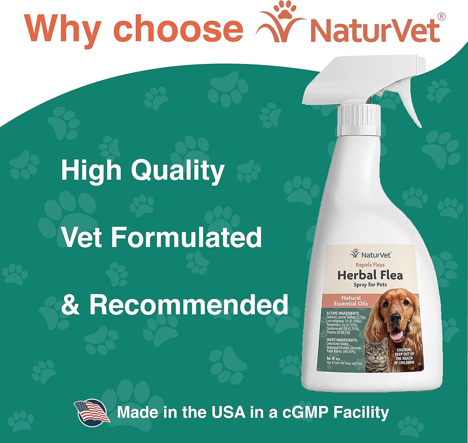 NaturVet – Herbal Flea Plus Essential Oils – Essential Oils – Deodorizes with a Fresh Herbal Fragrance – for Dogs & Cats – 16 oz Spray