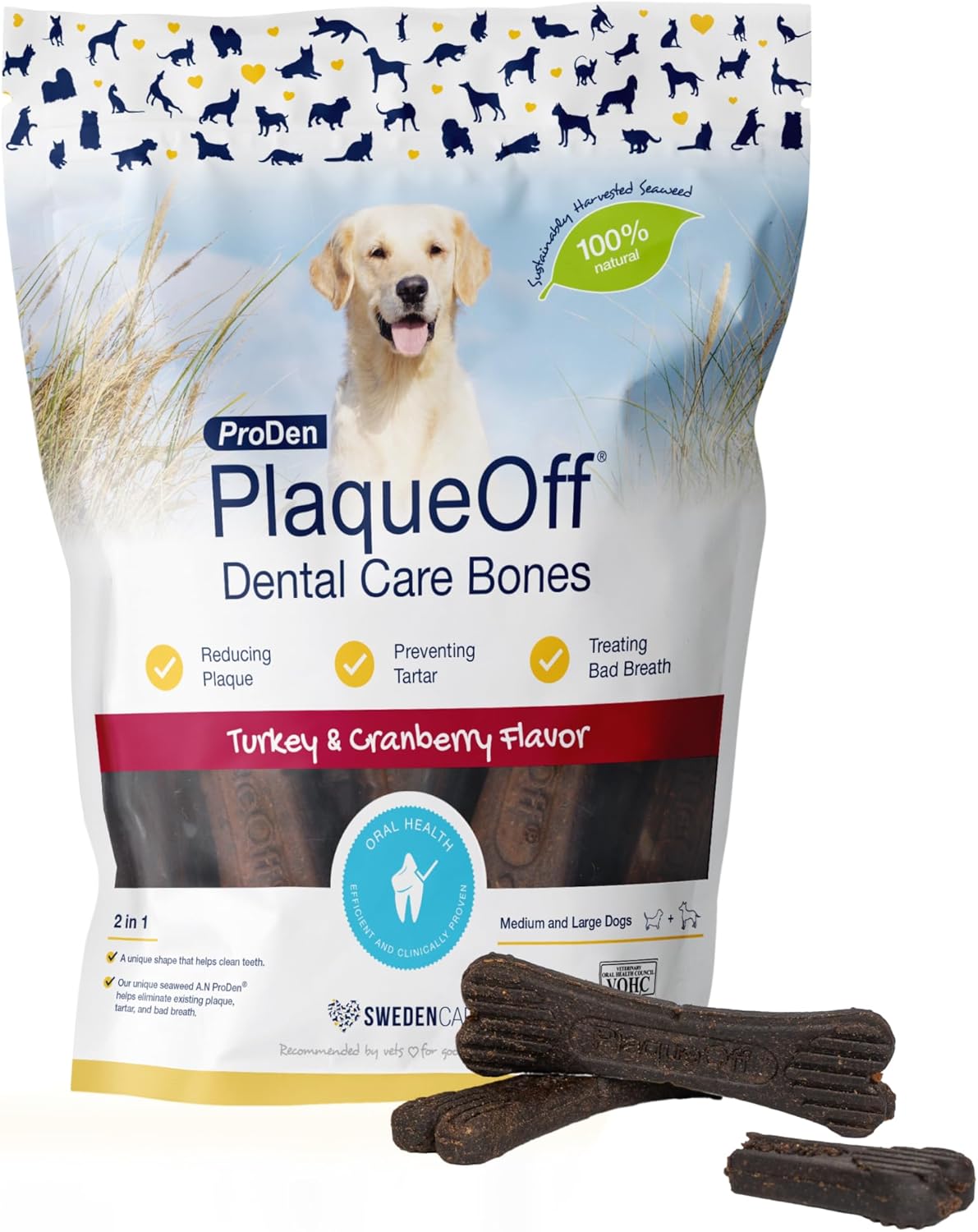 NaturVet ProDen PlaqueOff System Dental Care Bones for Dogs - Dog Breath Freshener & Plaque Remover - Dog Teeth Cleaning for a Healthy Mouth - Turkey Cranberry Flavor