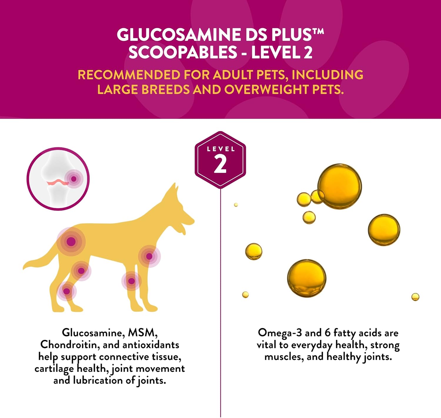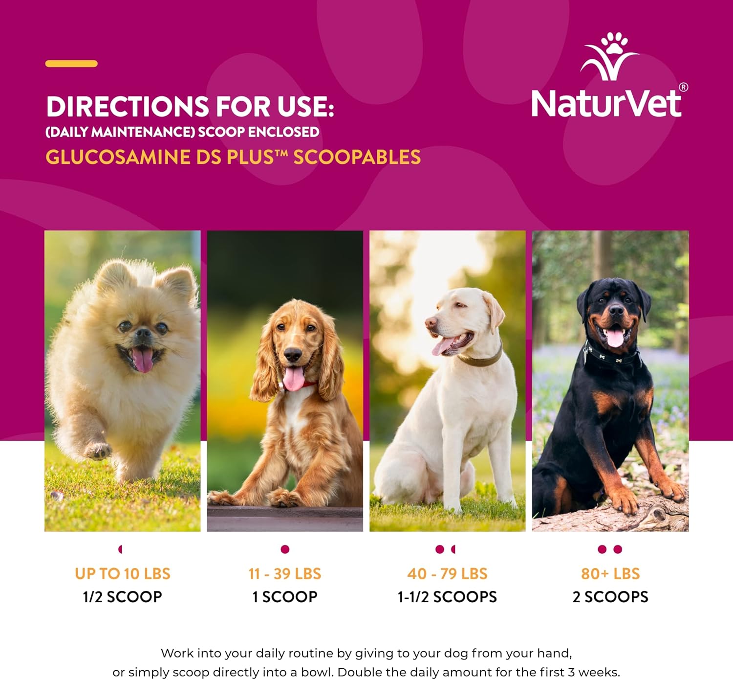 NaturVet Scoopables Dog Joint Supplement - Glucosamine DS Plus Level 2 Moderate Hip & Joint Care for Dogs w/Chondroitin & MSM - Hickory Smoked Bacon Flavored Pet Health Supplements