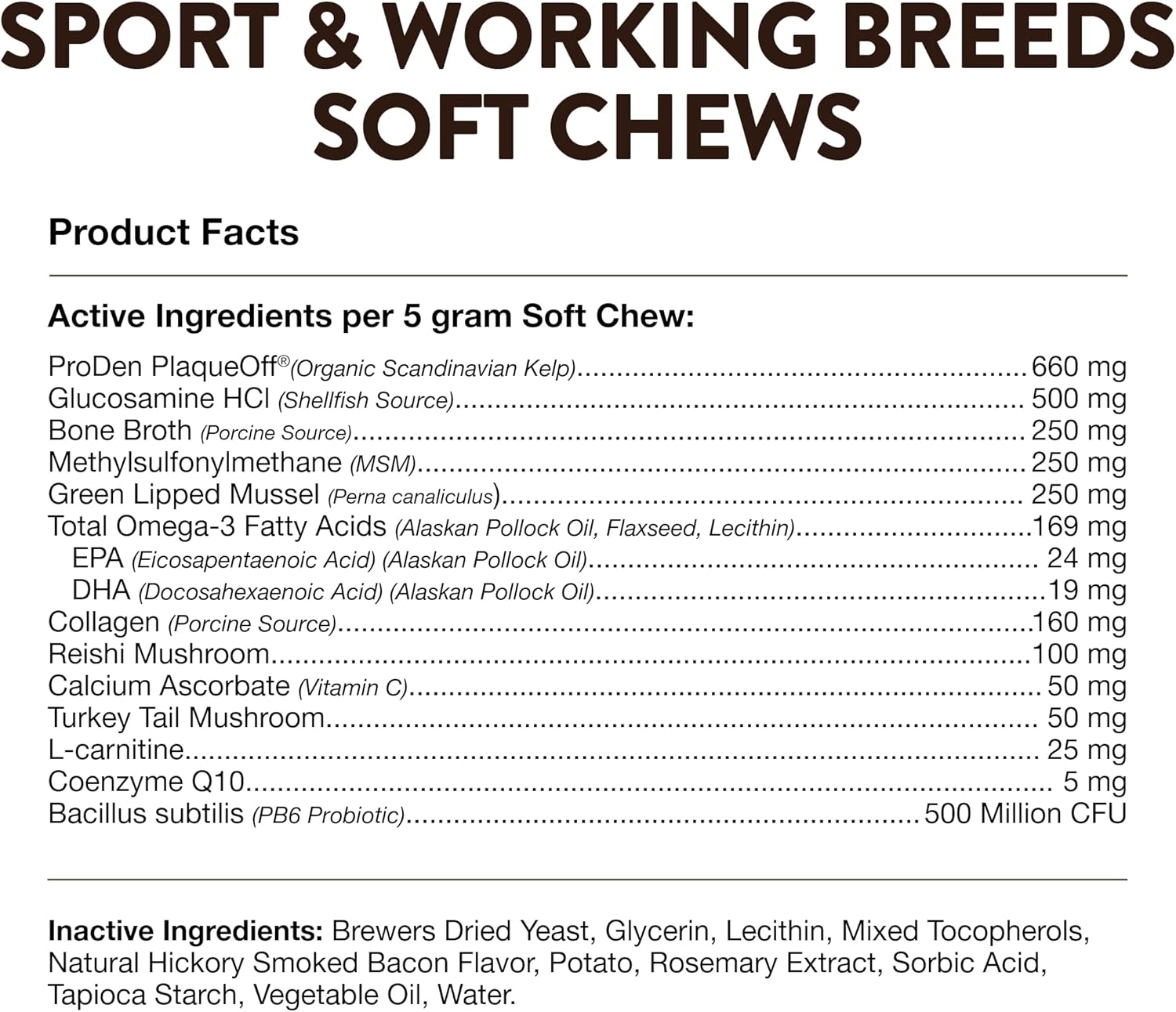 NaturVet Sport Breed Supplement- for Joint Support, Digestion, Skin, Coat Care- Dog Multivitamins with Minerals, Omegas, PlaqueOff- Wheat-Free Vitamins for Dogs- Sport and Working Breed- 50 Soft Chews
