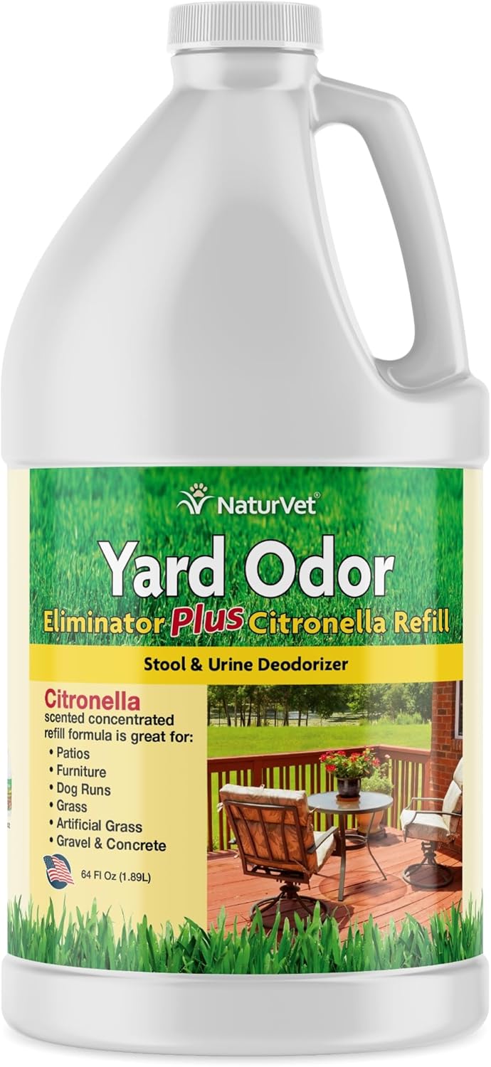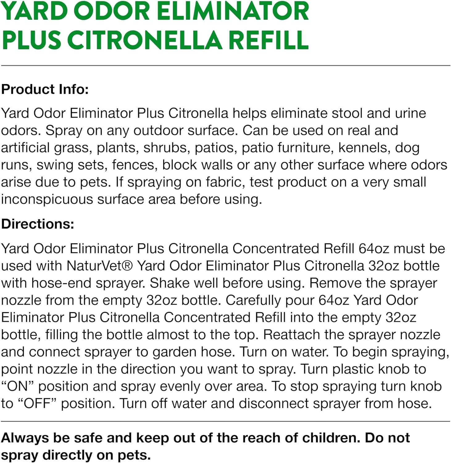 NaturVet – Yard Odor Eliminator Plus Citronella Spray – Eliminate Stool and Urine Odors from Lawn and Yard – Designed for Use on Grass, Patios, Gravel, Concrete & More – 64oz Refill (No Hose Nozzle)