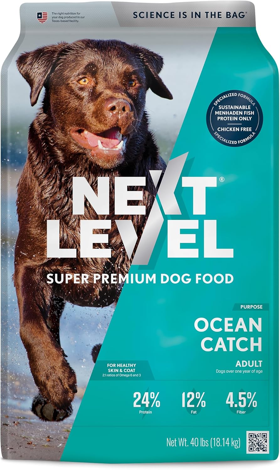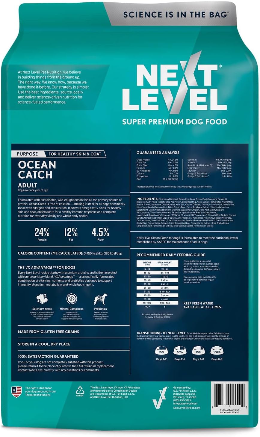 Next Level Super Premium Dog Food – Ocean Catch – Dry Kibble for Adult Dogs of All Breeds – 24% Protein, Fish with Gluten Free Grains 40 lb