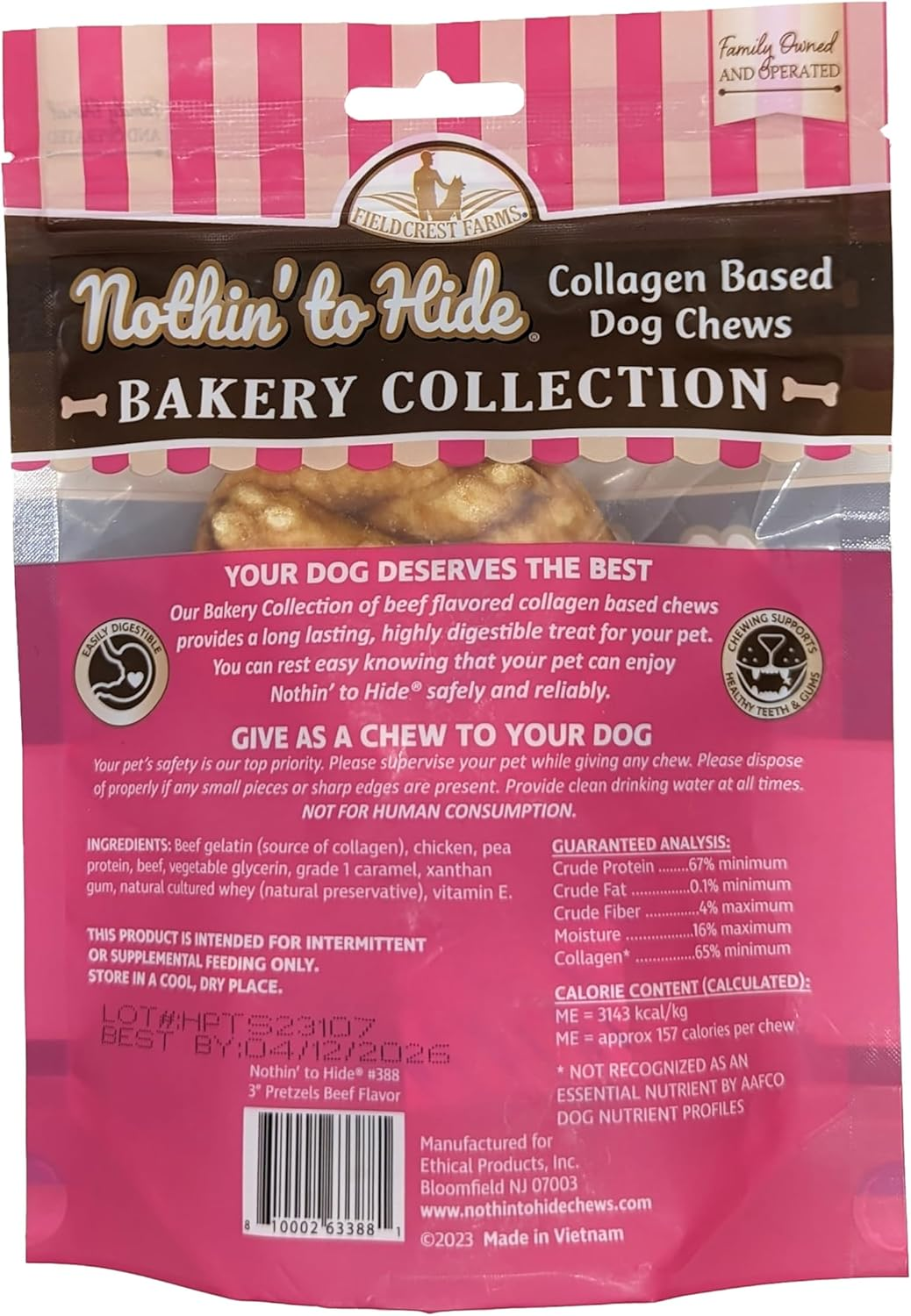 Nothin' to Hide Collagen-Based Dog Chews Medium Pretzel, Beef Flavor, Easily Digestible, Supports Skin, Coat, Joints & Muscles, for Moderate Chewers Under 15lbs