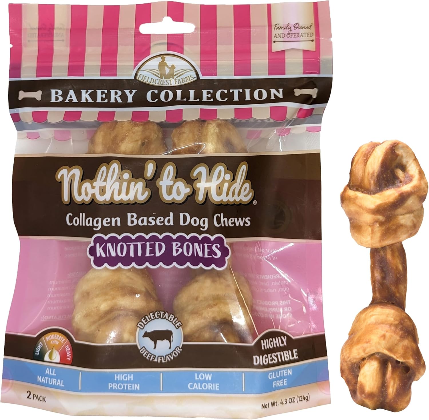 Nothin' to Hide Collagen-Based Dog Chews Small Knotted Bones, Beef Flavor, Easily Digestible, Supports Skin, Coat, Joints & Muscles, for Moderate Chewers Under 15lbs