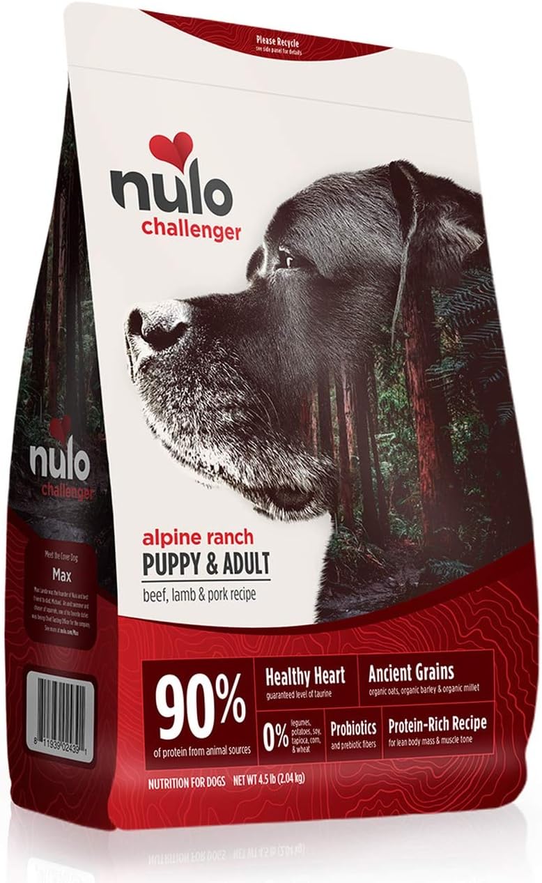 Deboned Beef, Deboned Lamb, Salmon Meal, Turkey Meal, Deboned Pork, Chicken Meal, Organic Oats, Organic Barley, Chicken Fat (preserved with Mixed Tocopherols & Citric Acid), Organic Millet, Ground Miscanthus Grass, Natural Flavor, Potassium Chloride, Salt, Dried Pumpkin, Dried Blueberries, Dried Spinach, Dried Chicory Root, DL-Methionine, Choline Chloride, Taurine, Calcium Carbonate, Zinc Proteinate, Vitamin E Supplement, Zinc Sulfate, L-Ascorbyl-2-Polyphosphate (source of Vitamin C), Iron Proteinate, Niacin Supplement, Ferrous Sulfate, Copper Proteinate, Copper Sulfate, Vitamin A Supplement, Manganese Proteinate, Thiamine Mononitrate, Calcium Pantothenate, Riboflavin Supplement, Pyridoxine Hydrochloride, Manganous Oxide, Biotin, Dried Bacillus coagulans Fermentation Product, Vitamin B12 Supplement, Vitamin D3 Supplement, Folic Acid, Sodium Selenite, Calcium Iodate, Rosemary Extract.