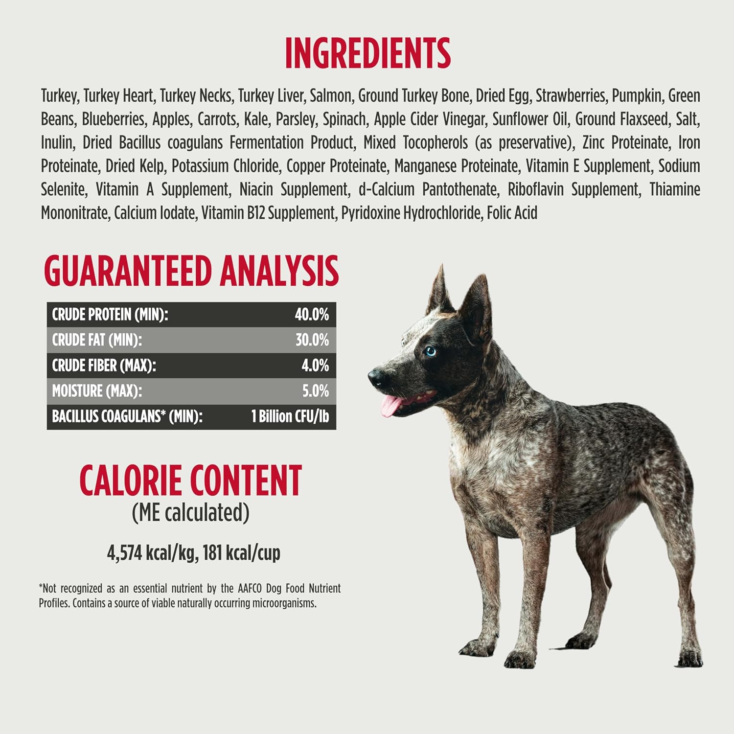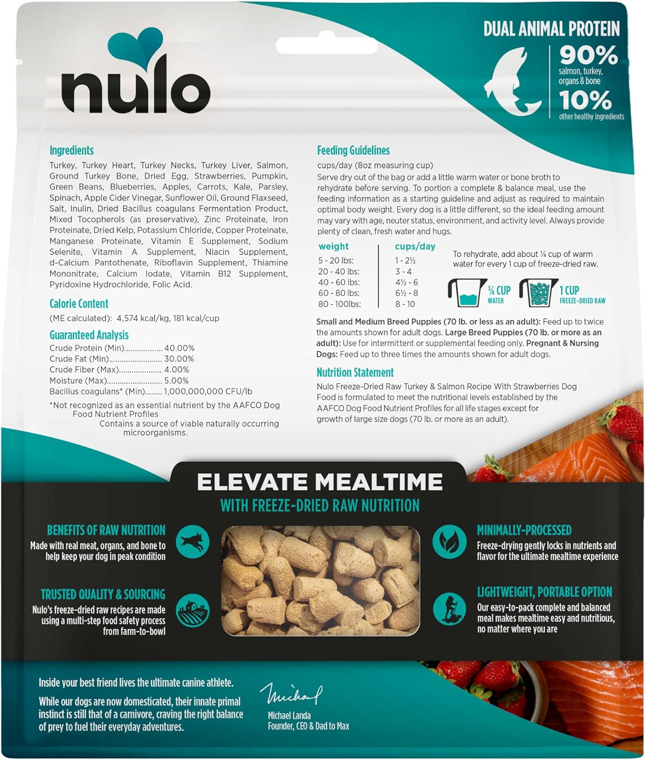 - HIGH ANIMAL-BASED PROTEIN 90% Turkey, Salmon, Organs, & Bone 10% Other Healthy Ingredients