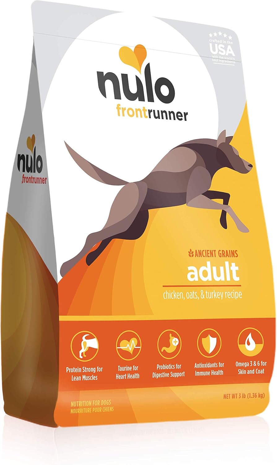 - FOSTERS A HEALTHY HEART: This dog food with chicken, oats, and turkey, has a level of taurine and Omega 3 which helps foster a strong cardiovascular system. So be a frontrunner, shop Nulo, become the leader of the pack.