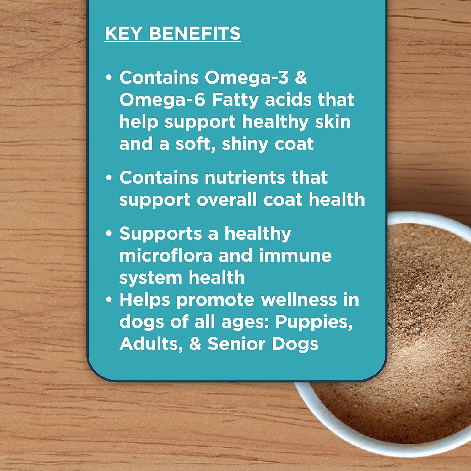 - Formulated with Flaxseed containing Omega-3 & Omega-6 Fatty acids that help support your dog's healthy skin and a soft, shiny coat.