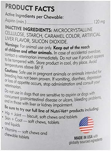 Nutri-Vet® Aspirin Chewable Tablets for Dogs – Pain Relief & Anti-Inflammatory Support (Small & Med-Large)