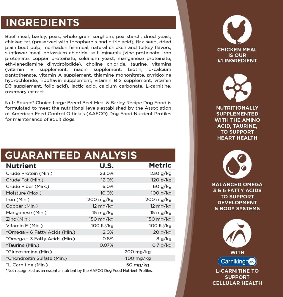 Brand NutriSource Flavor Large Breed Beef Age Range (Description) All Life Stages Item Form Granule Specific Uses...