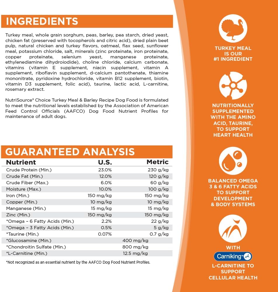 NutriSource Choice Dry Dog Food, Turkey Meal & Barley Recipe