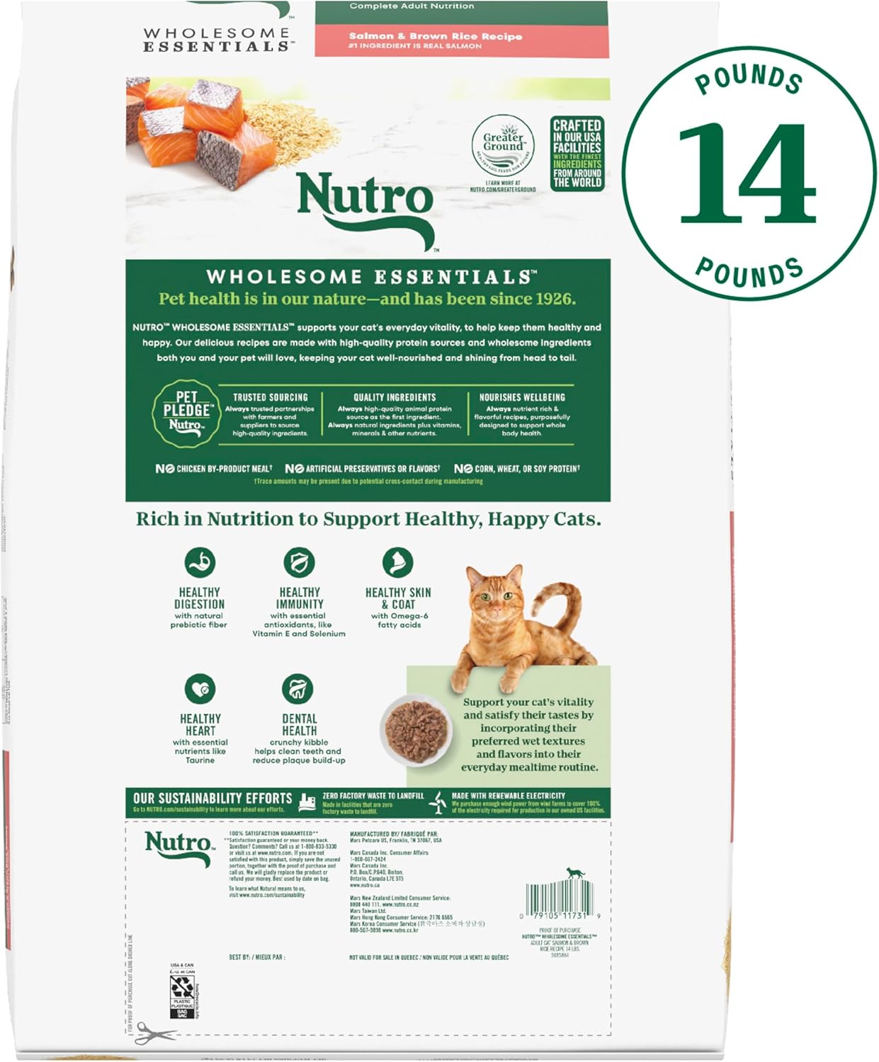 Nutro Wholesome Essentials Adult Dry Cat Food, Salmon & Brown Rice Recipe