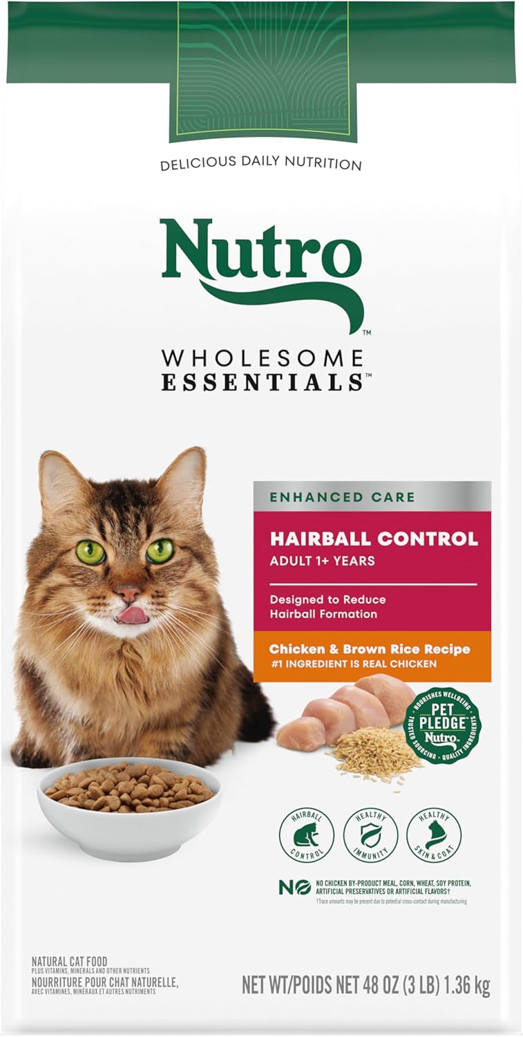 Nutro Wholesome Essentials Hairball Control Dry Cat Food Chicken & Brown Rice Recipe, 3 lb. Bag
