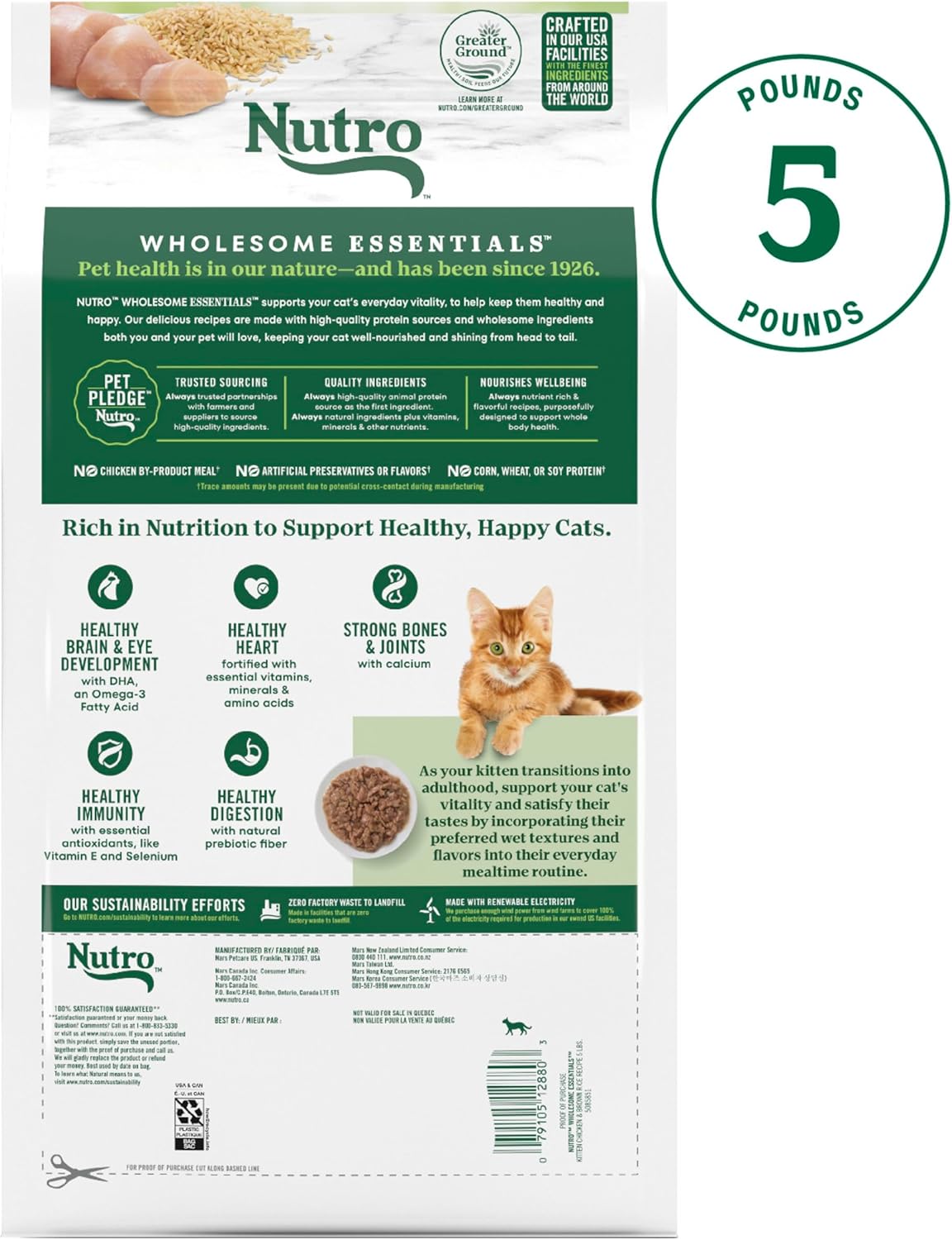 Nutro Wholesome Essentials Natural Dry Cat Food Kitten Formula Chicken & Brown Rice, 5 lb. Bag