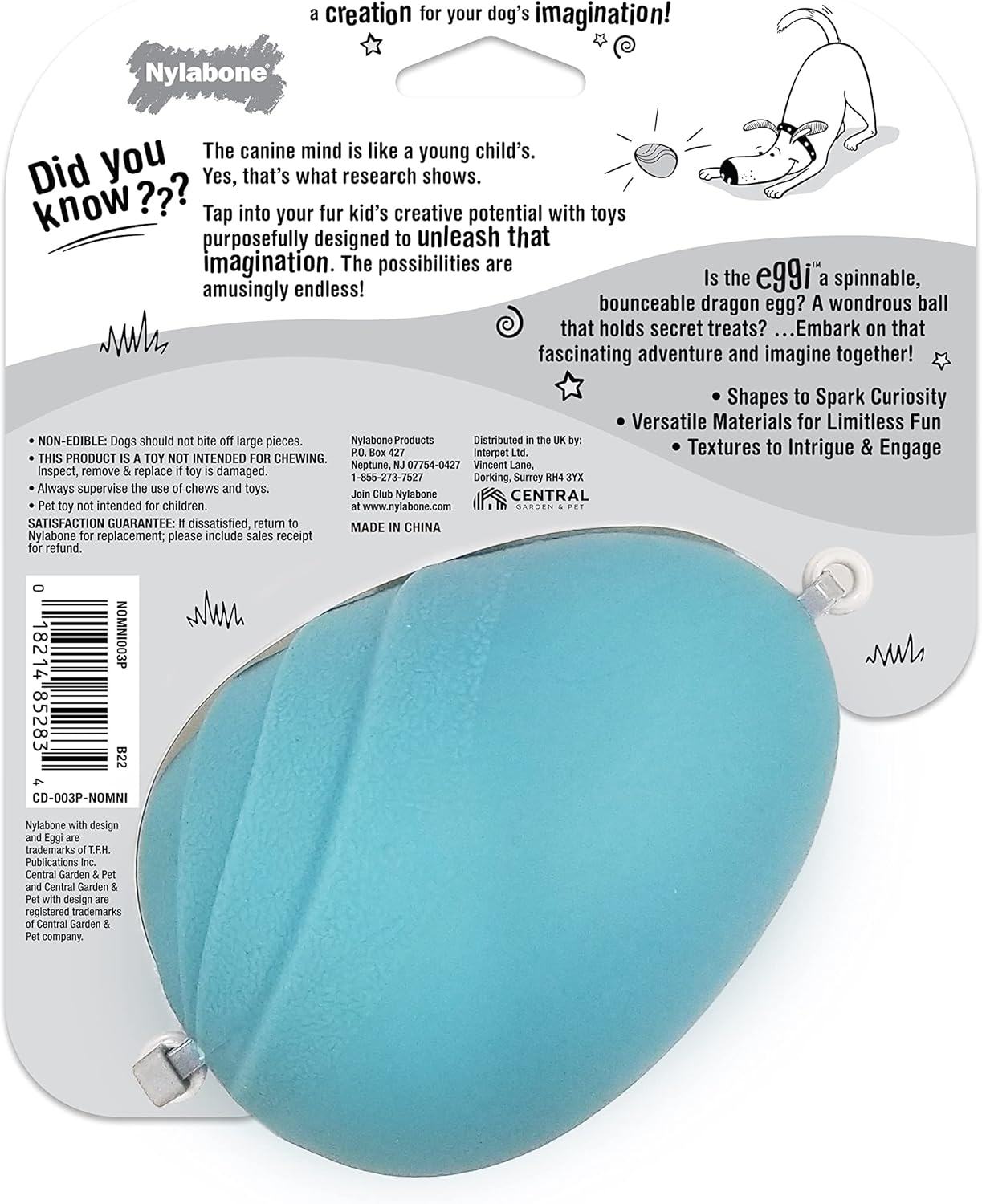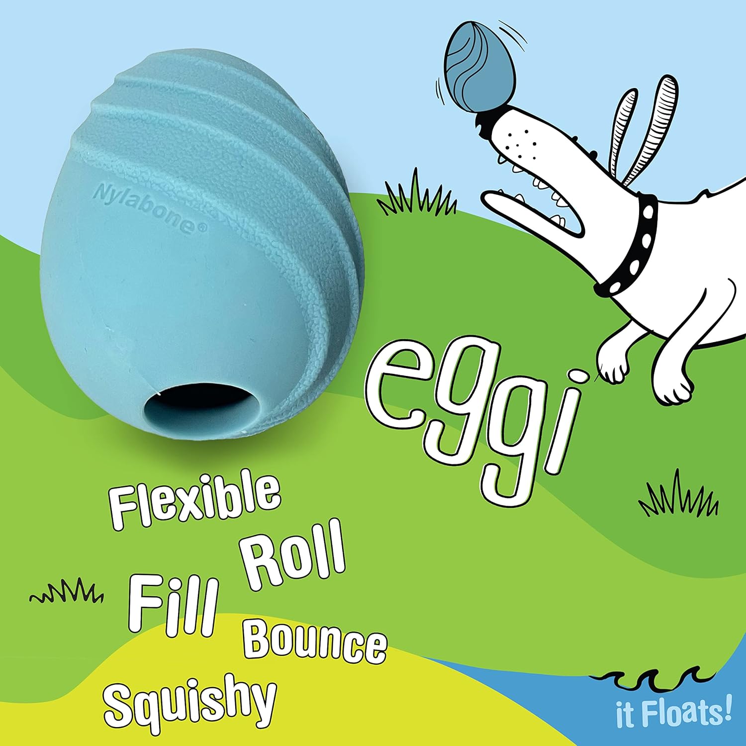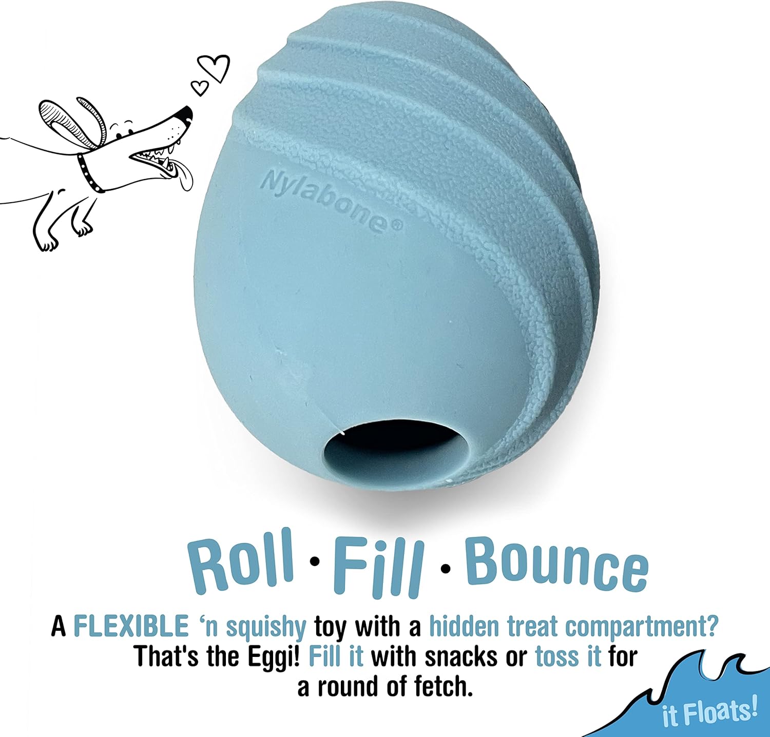 Nylabone Eggi Interactive Fillable Dog Chew Toy - Lightweight Bouncy Floatable Dog Treat Toy for Creative Play & Dog Exercise, Blue, Large/Giant - Up to 50 lbs. (1 Count)