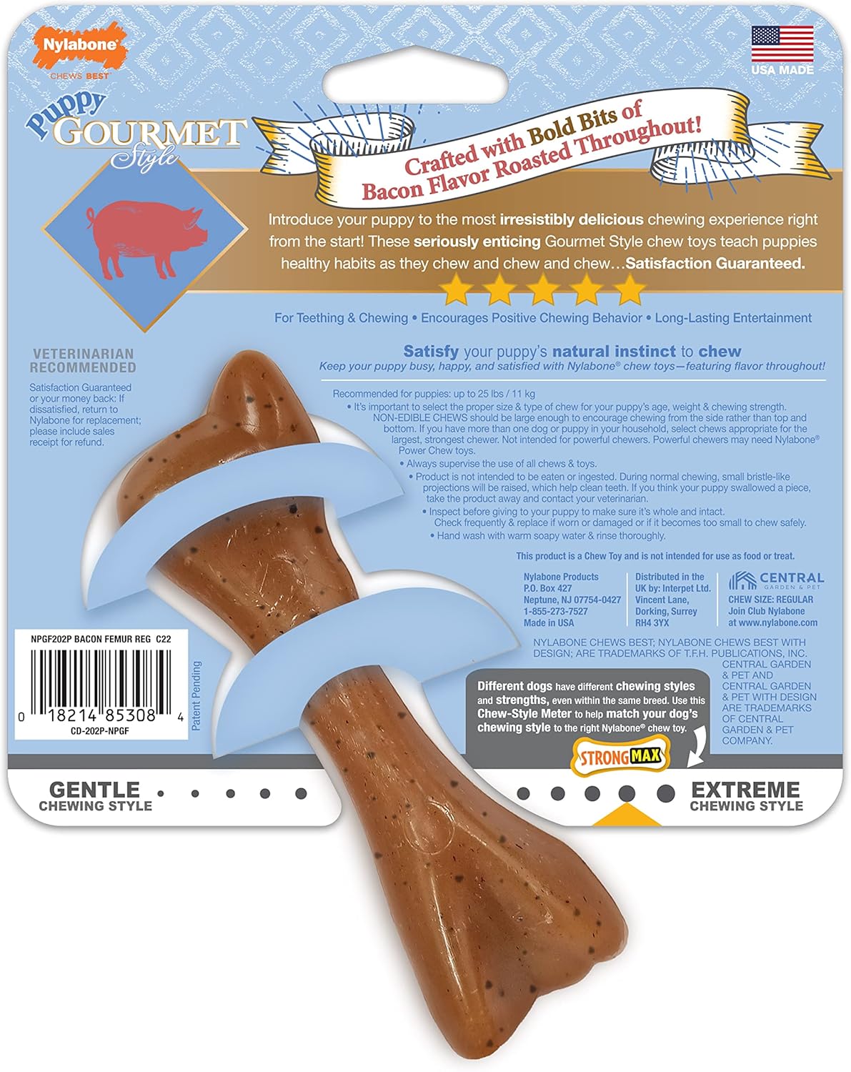 Nylabone Gourmet Style Femur Bone Strong Chew Toy for Puppies, Bacon Flavor, Small - Up to 25 Ibs, 1 Count