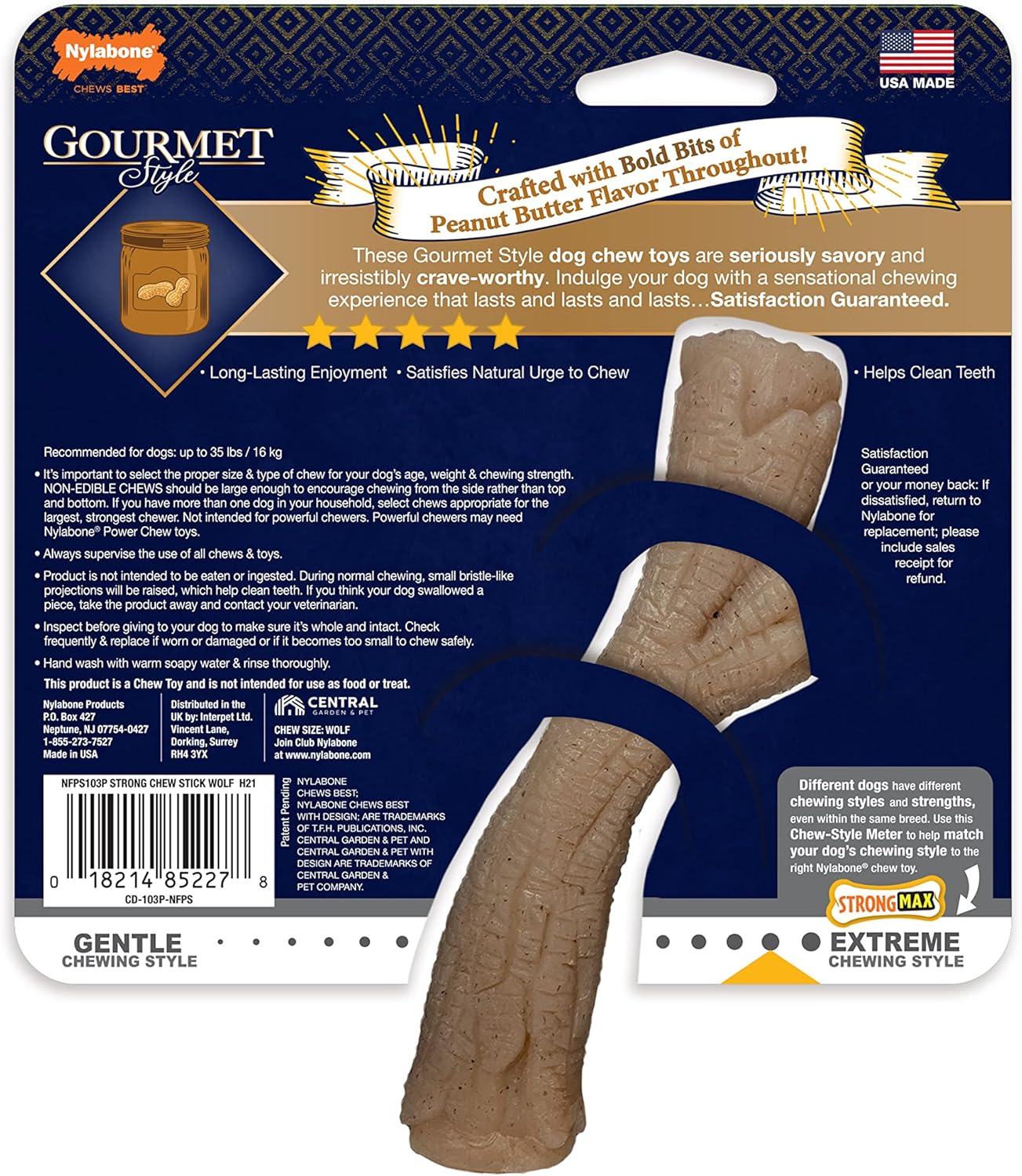 Nylabone Gourmet Style Stick Strong Chew Toy for Dogs, Peanut Butter Flavor, Medium