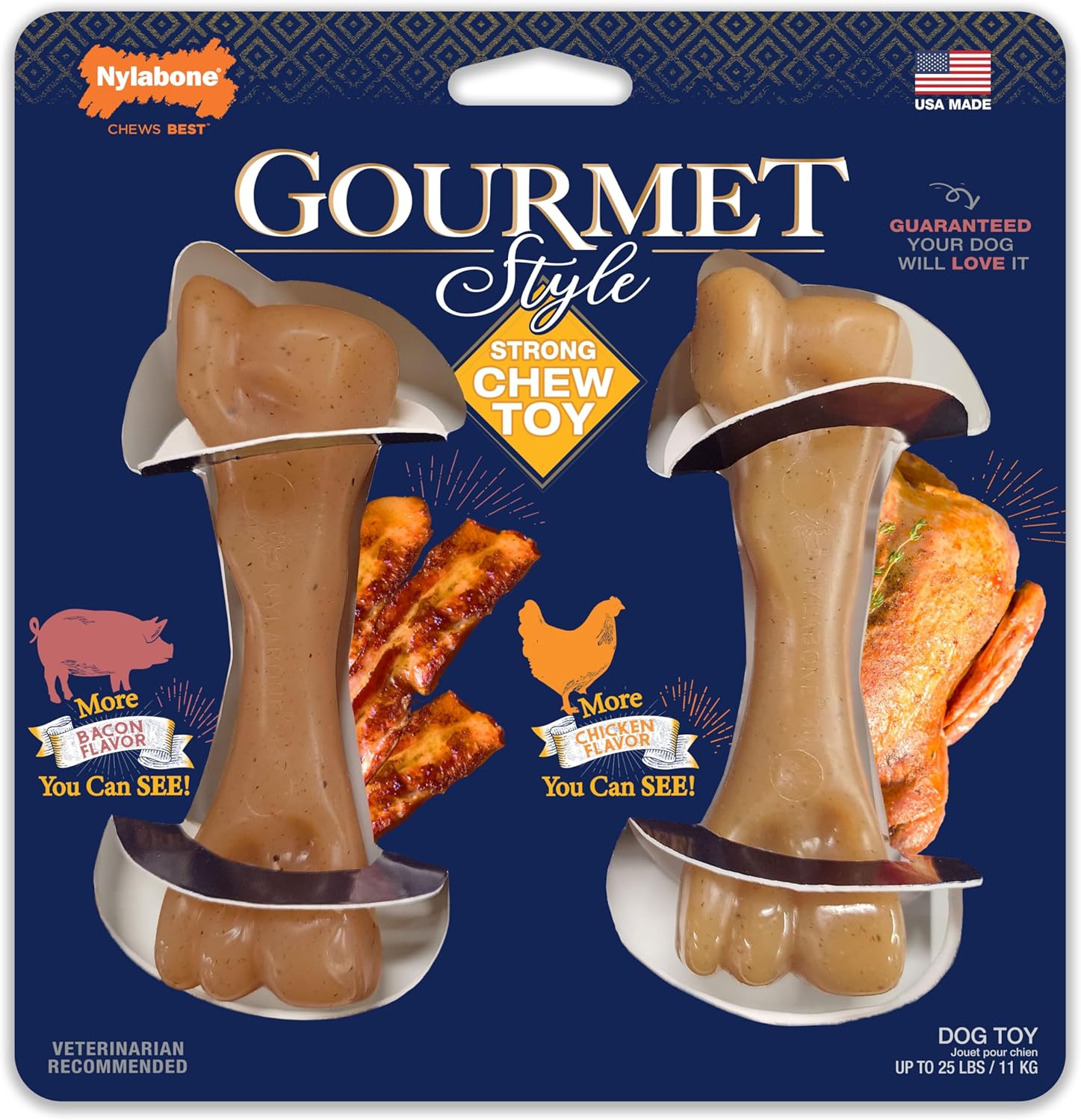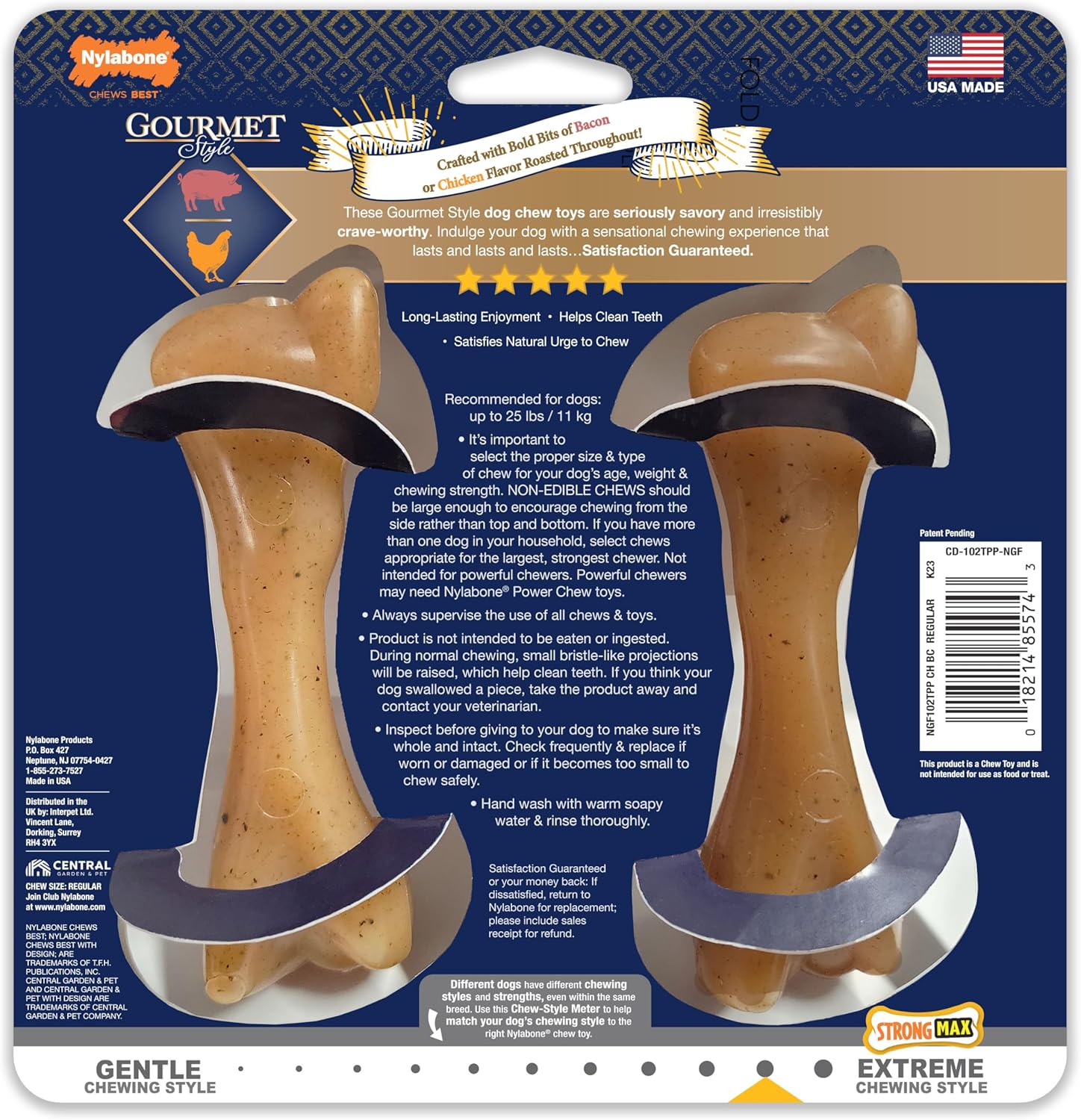 Nylabone Gourmet Style Strong Chew Toy Bundle, Toys for Dogs, Bacon & Chicken Flavor, Small - Up to 25 lbs, 2 Pack