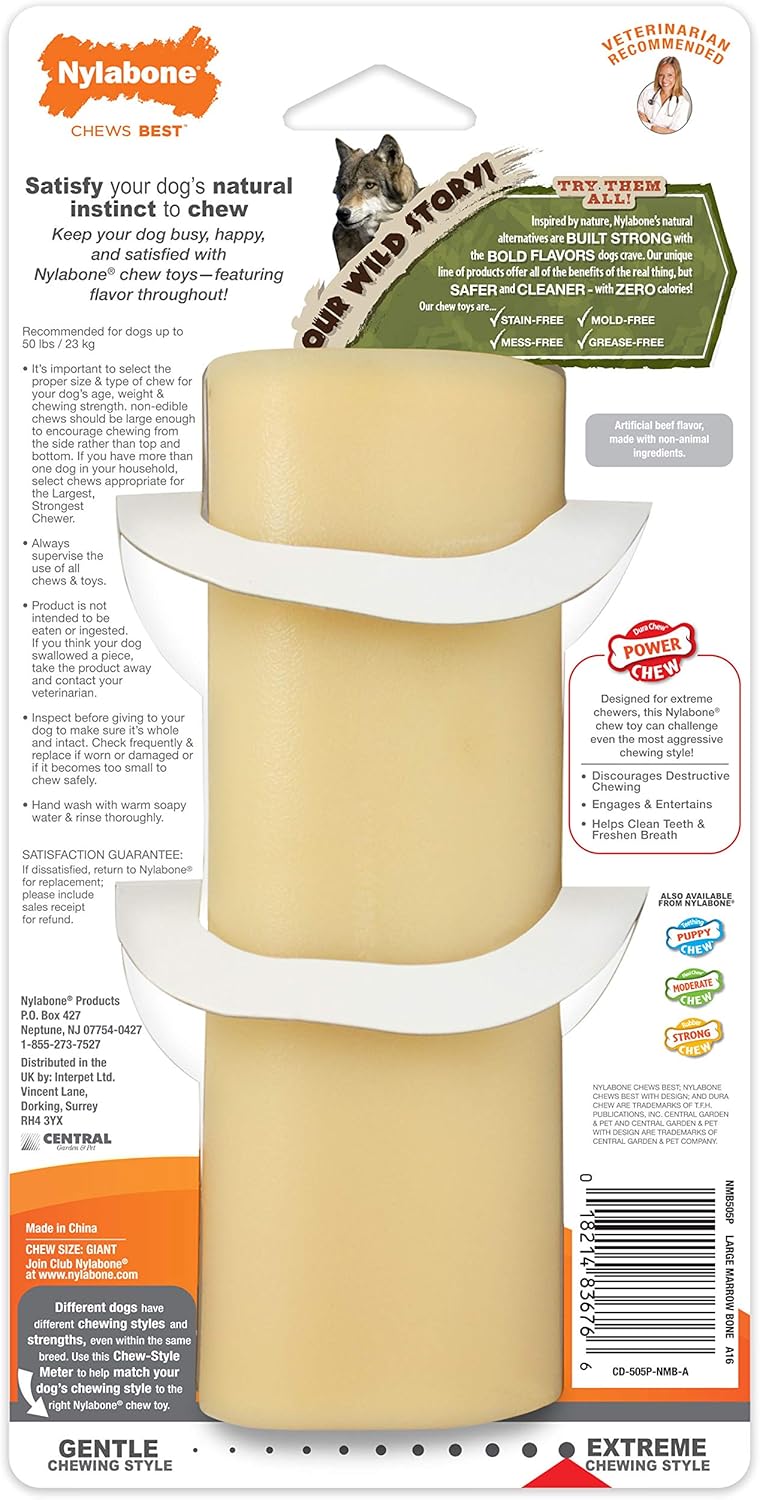 Nylabone Marrow Bone Alternative Power Chew Toy for Dogs, Dog Toys for Aggressive Chewers, Beef Flavor, Large