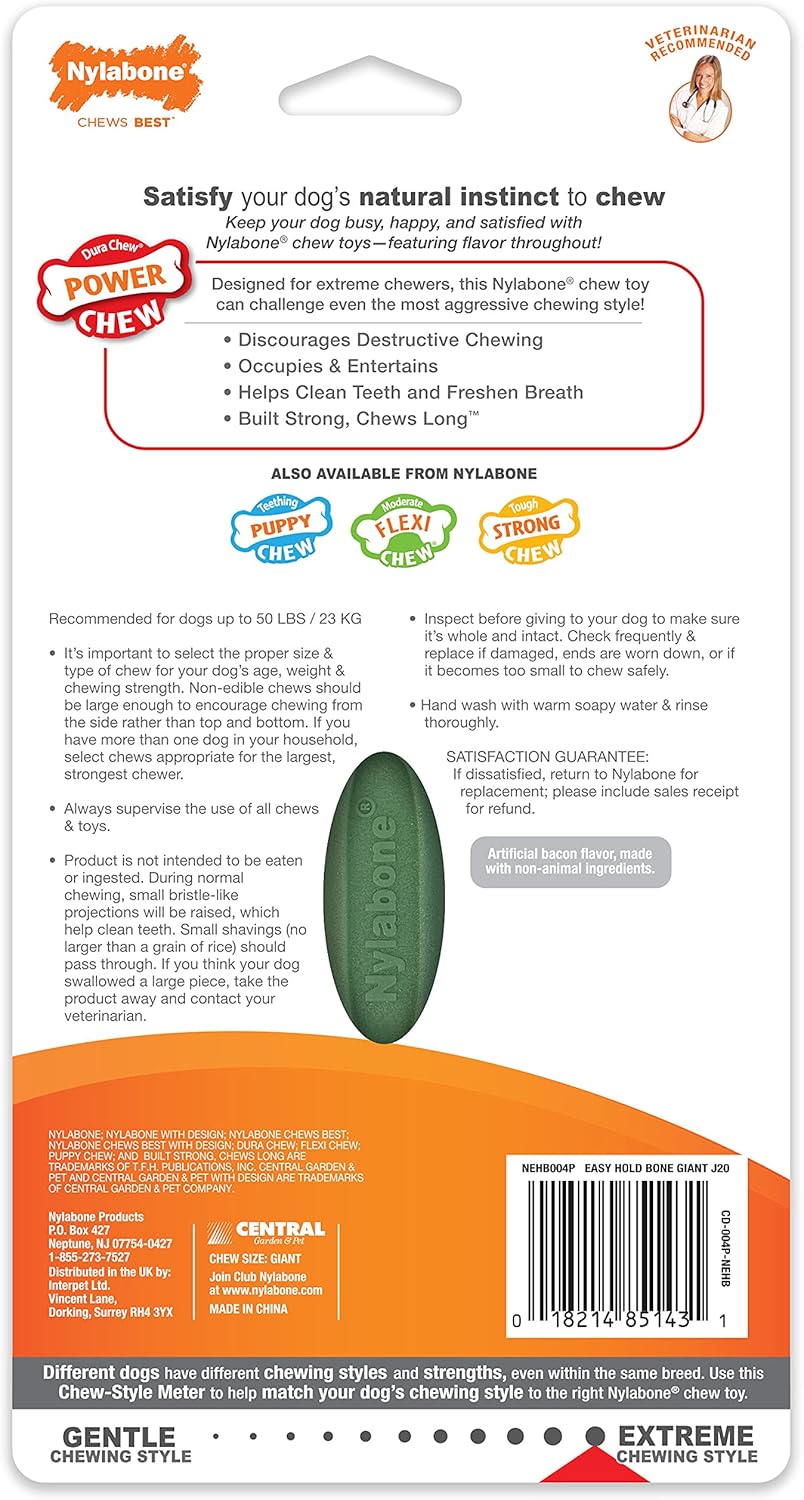 Nylabone Power Chew Easy-Hold Dog Toy - Dog Toys for Aggressive Chewers - Indestructible Dog Toys for Aggressive Chewers Large Breed - For Large Dogs - Bacon Large/Giant