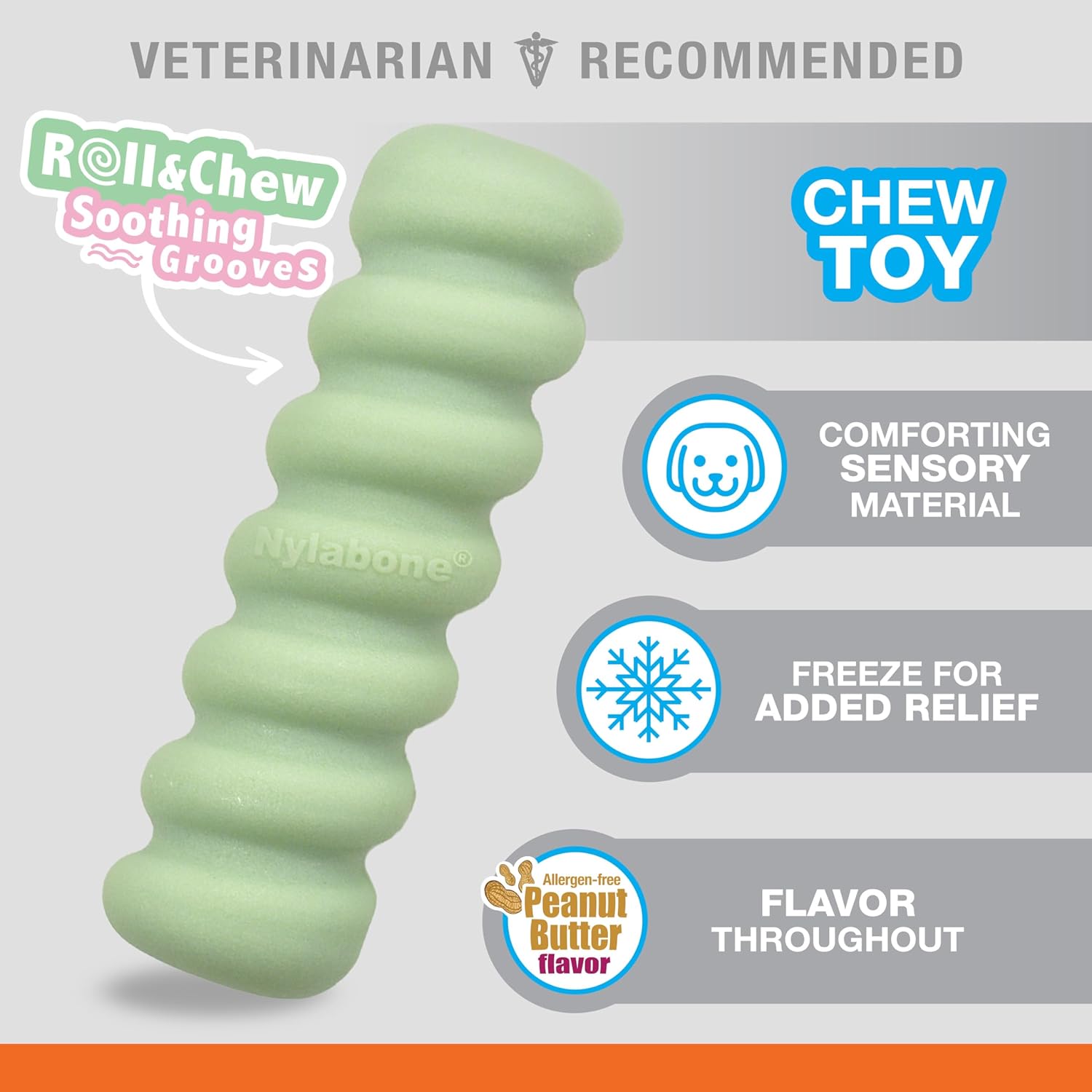 Nylabone Sensory Material Soothing Puppy Chew Toy Stick, Toys for Teething Puppies, Peanut Butter Flavor, Small - Up to 25 lbs, 1 Count