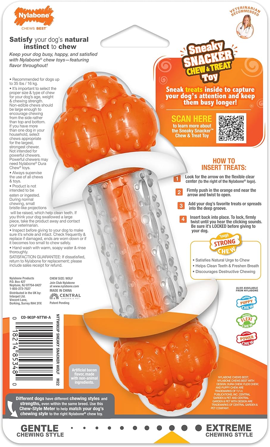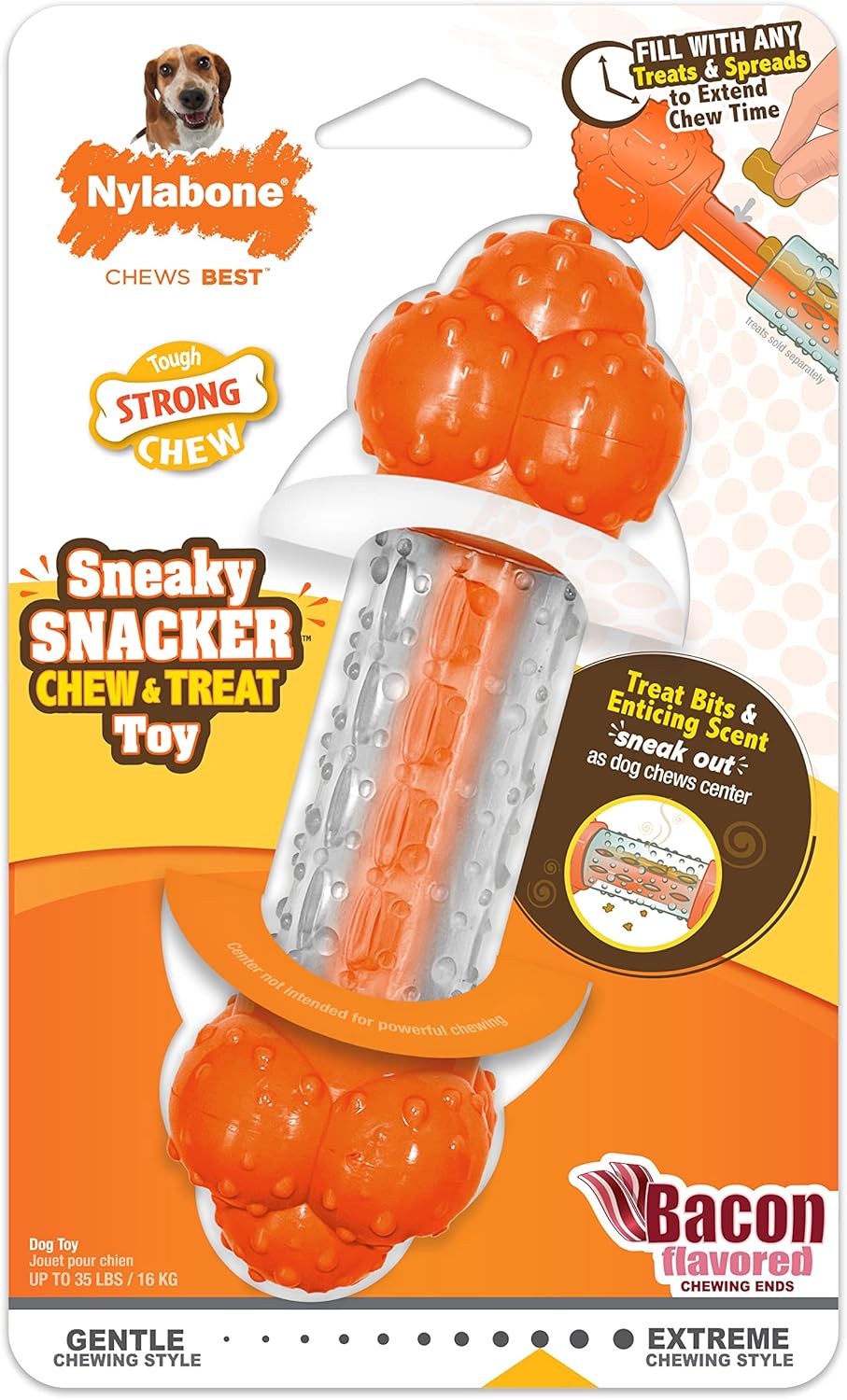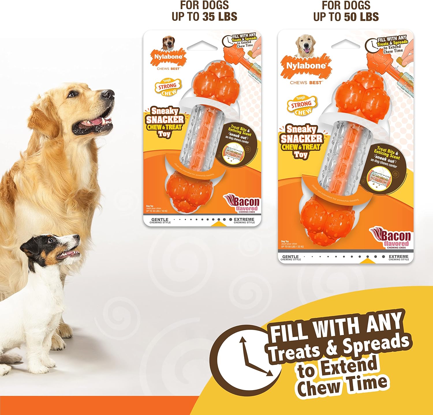 Nylabone Strong Chew Sneaky Snacker Treat Toy for Dogs, Interactive Dog Enrichment Chew Toys, Bacon Flavor
