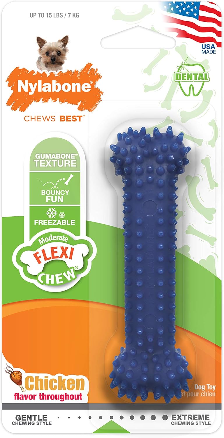 Nylabone Textured Dental Bone Flexi Chew Toy for Dogs, Dog Toys for Moderate Chewers, Chicken Flavor
