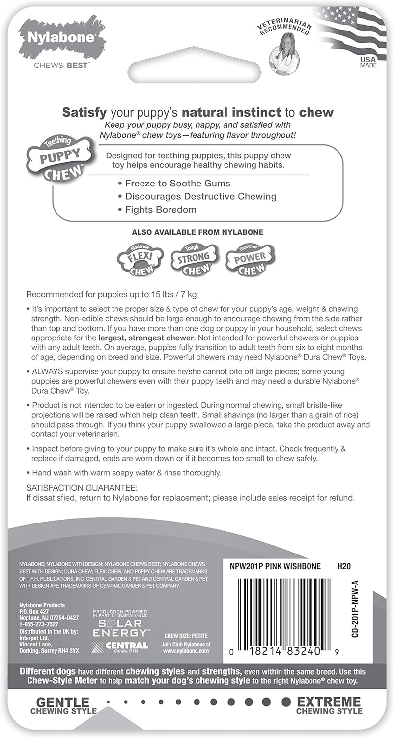 Nylabone Wishbone Puppy Chew Toy, Toys for Teething Puppies, Pink, Chicken Flavor