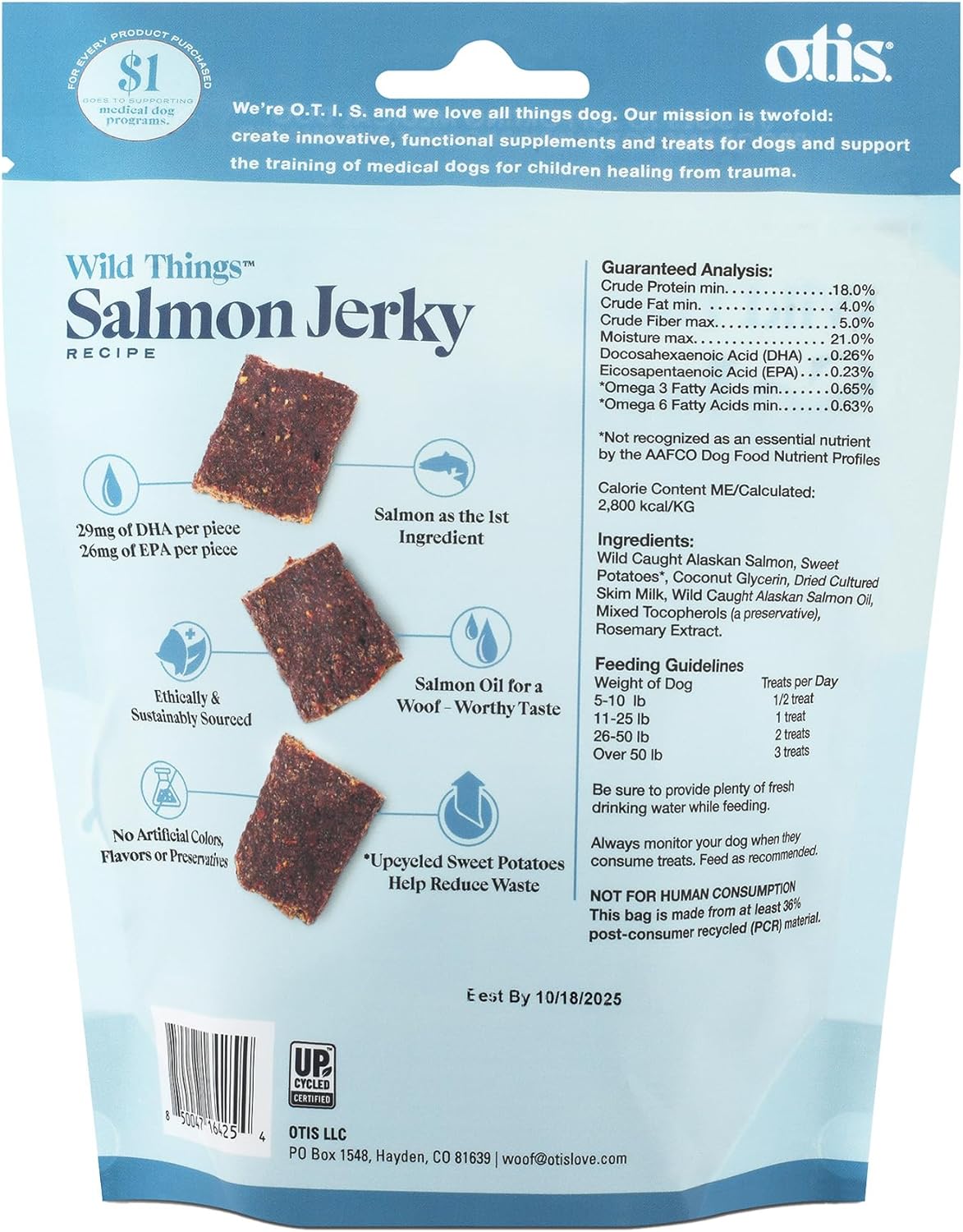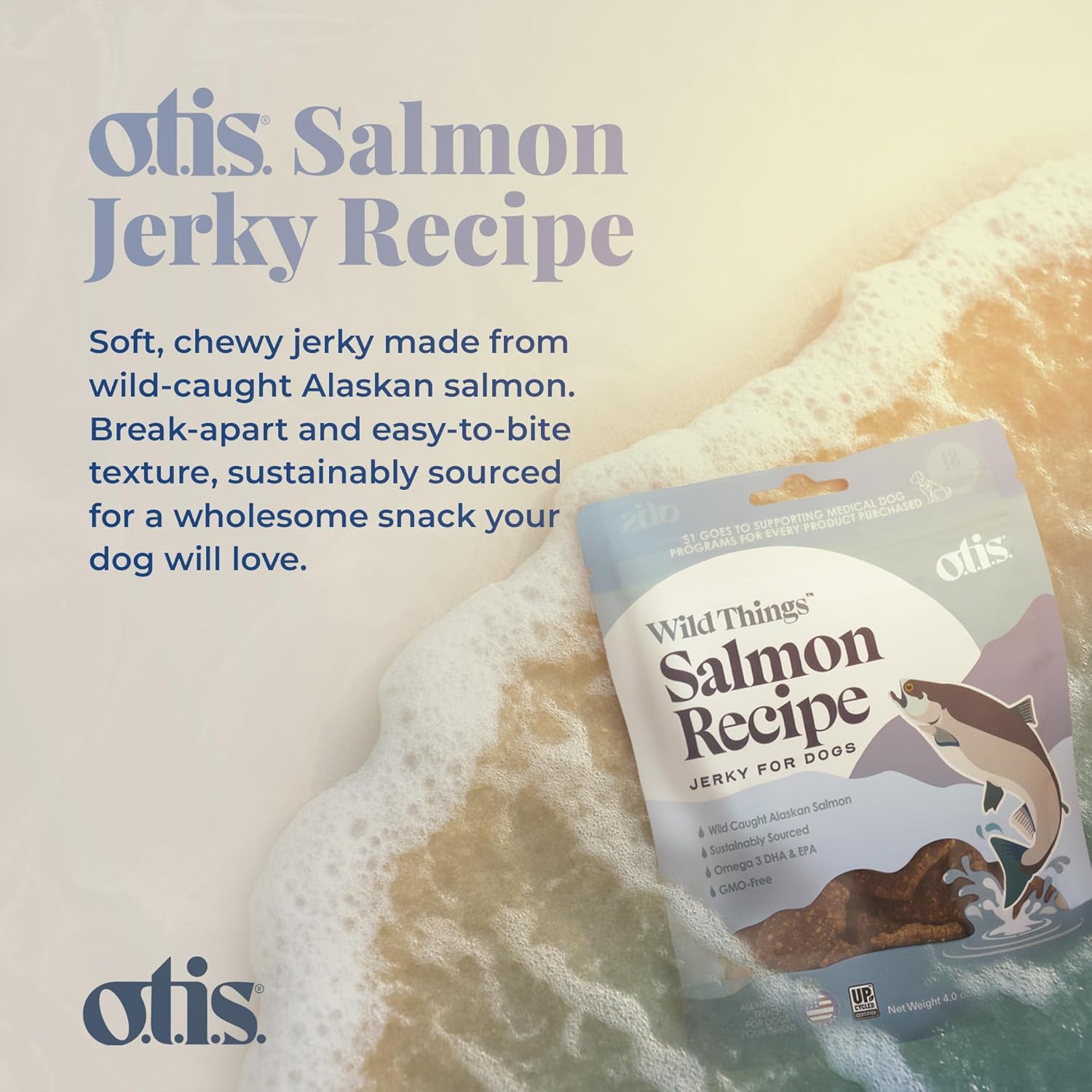 O.T.I.S. Wild Things Salmon Recipe Jerky for Dogs – 4 oz – Soft Treats with Wild-Caught Alaskan Salmon – Omega 3 DHA & EPA – GMO-Free – No Artificial Additives