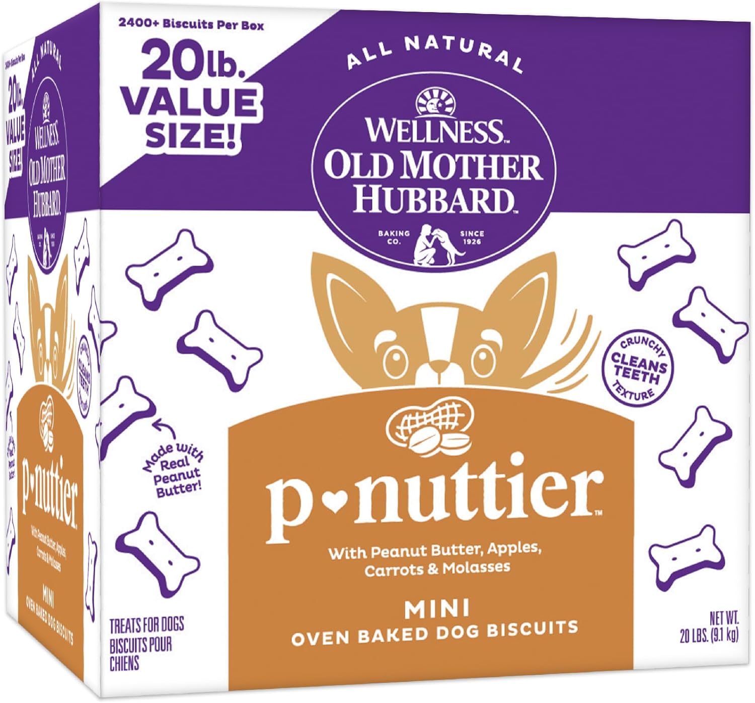 Old Mother Hubbard Wellness P-Nuttier Dog Biscuits, Natural, Training Treats, Peanut Butter Flavor, Mini Size, (20 Pound Box)