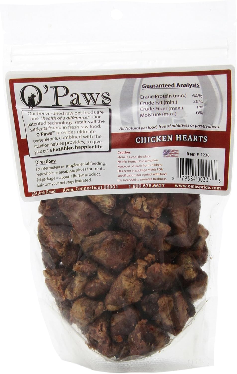 Omas Pride Opaws Freeze Dried Raw Whole Chicken Heart Treats For Dogs/Cats, 4-Ounce
