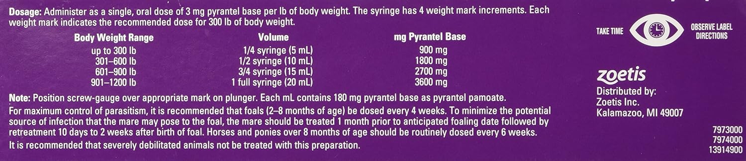 Strongid Paste Pyrantel Pamoate Horse Dewormer is a broad-spectrum horse dewormer that’s effective against a variety of internal parasites. The active ingredient, pyrantel pamoate, helps to control and remove large strongyles, small strongyles, roundworms and pinworms. Each syringe treats up to 1,200 pounds of body weight, and the oral paste is convenient to administer. This dewormer is safe for use in breeding, pregnant and lactating mares, as well as in young foals.