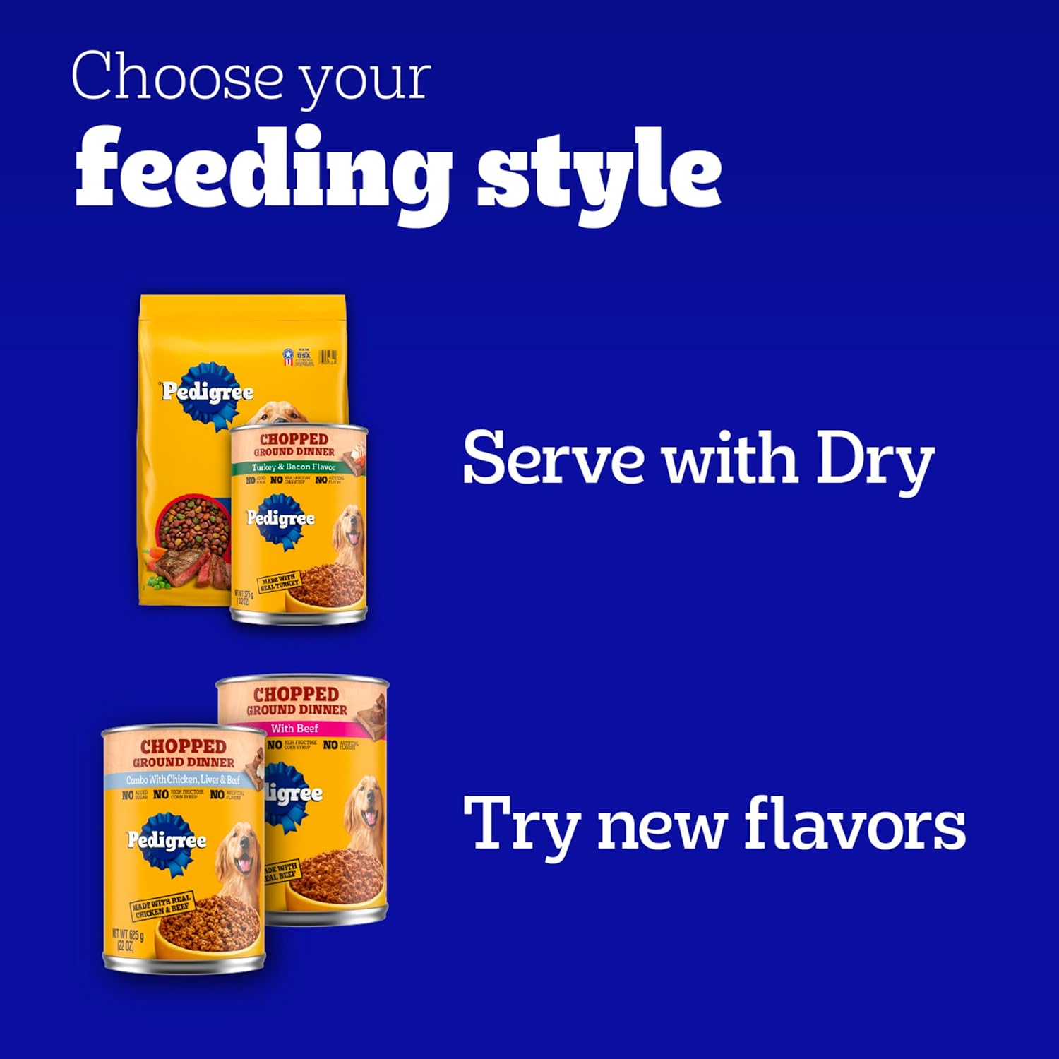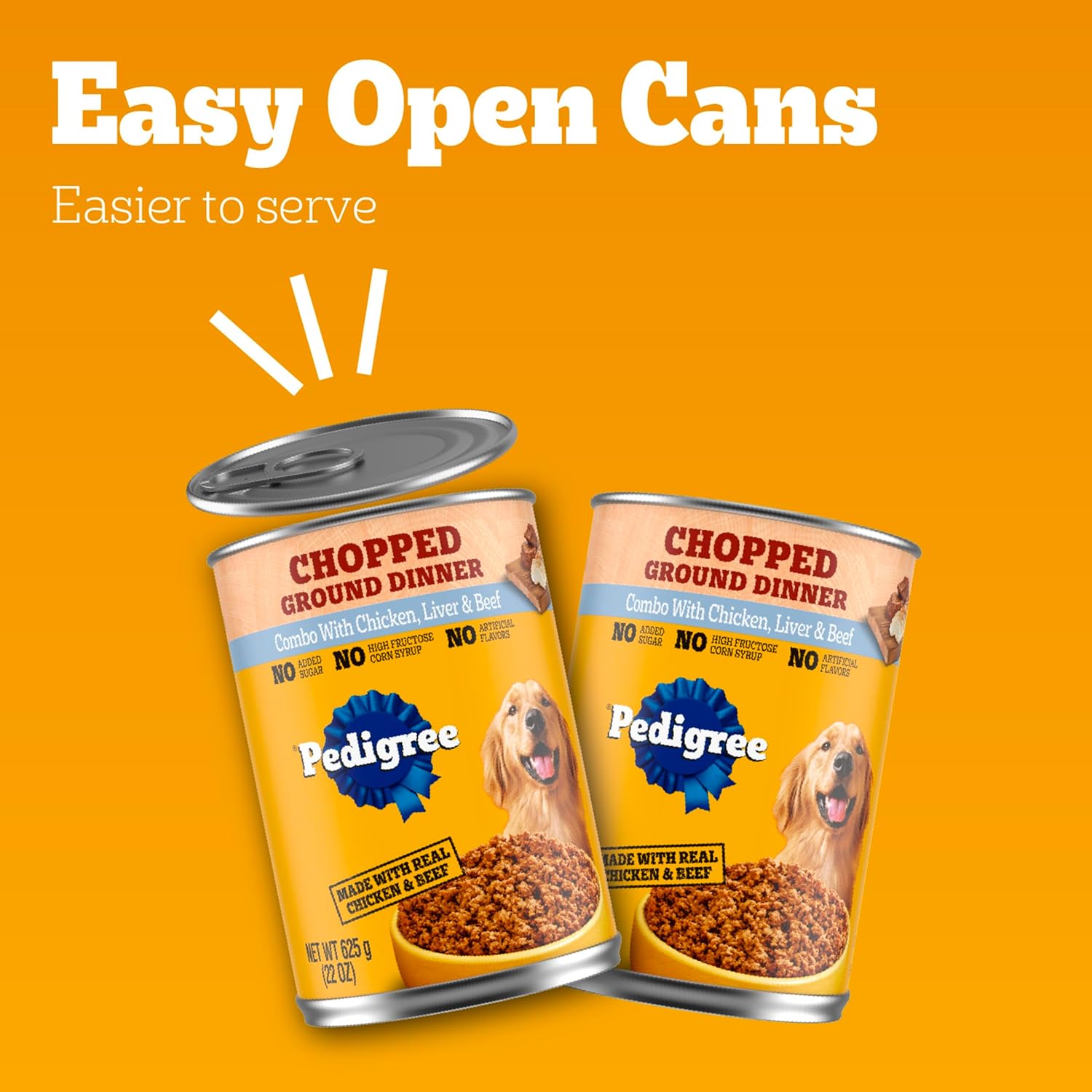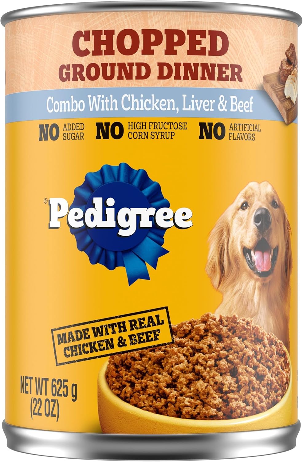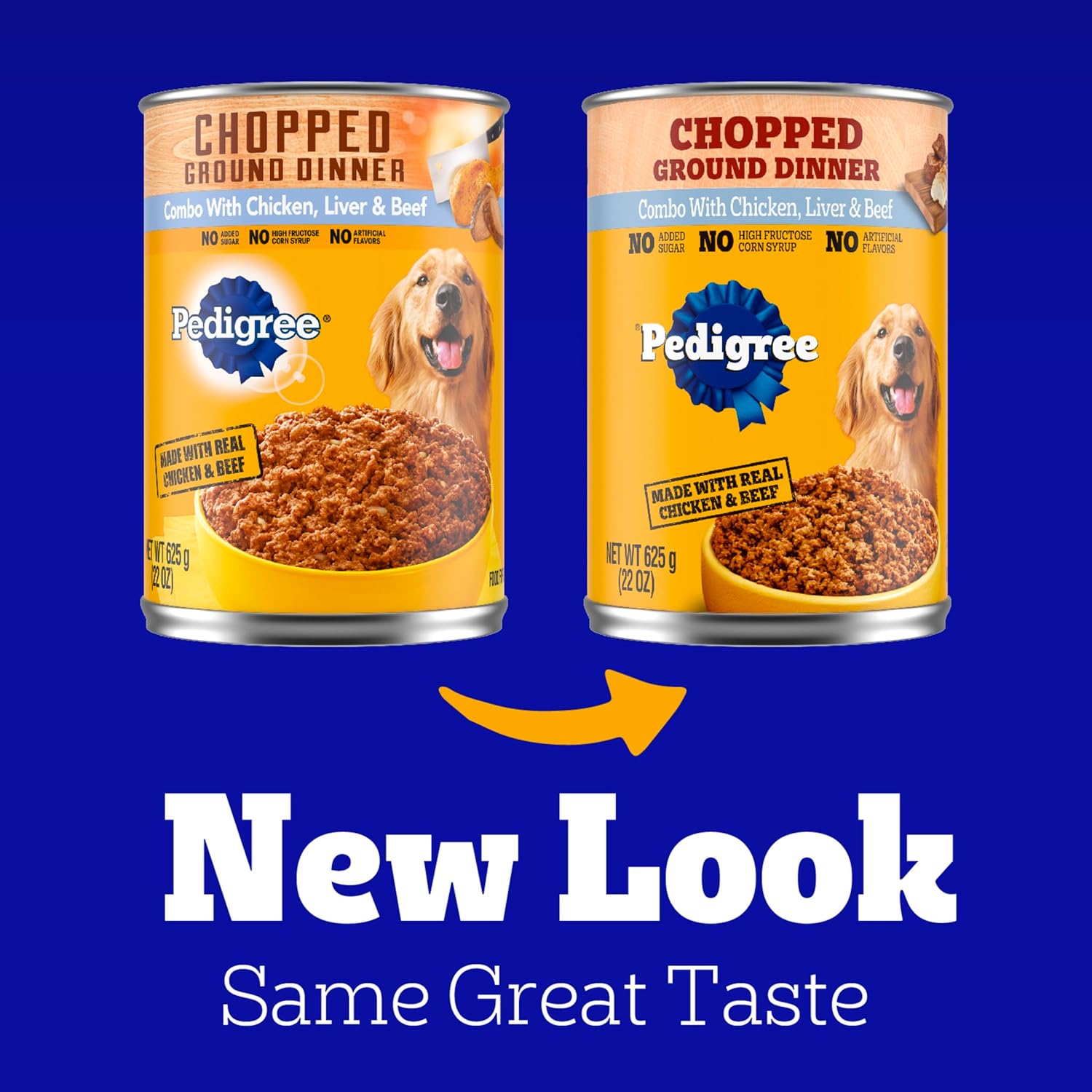 - Contains twelve (12) 22 oz. cans of PEDIGREE Chopped Ground Dinner Combo With Chicken, Beef & Liver Canned Wet Dog Food