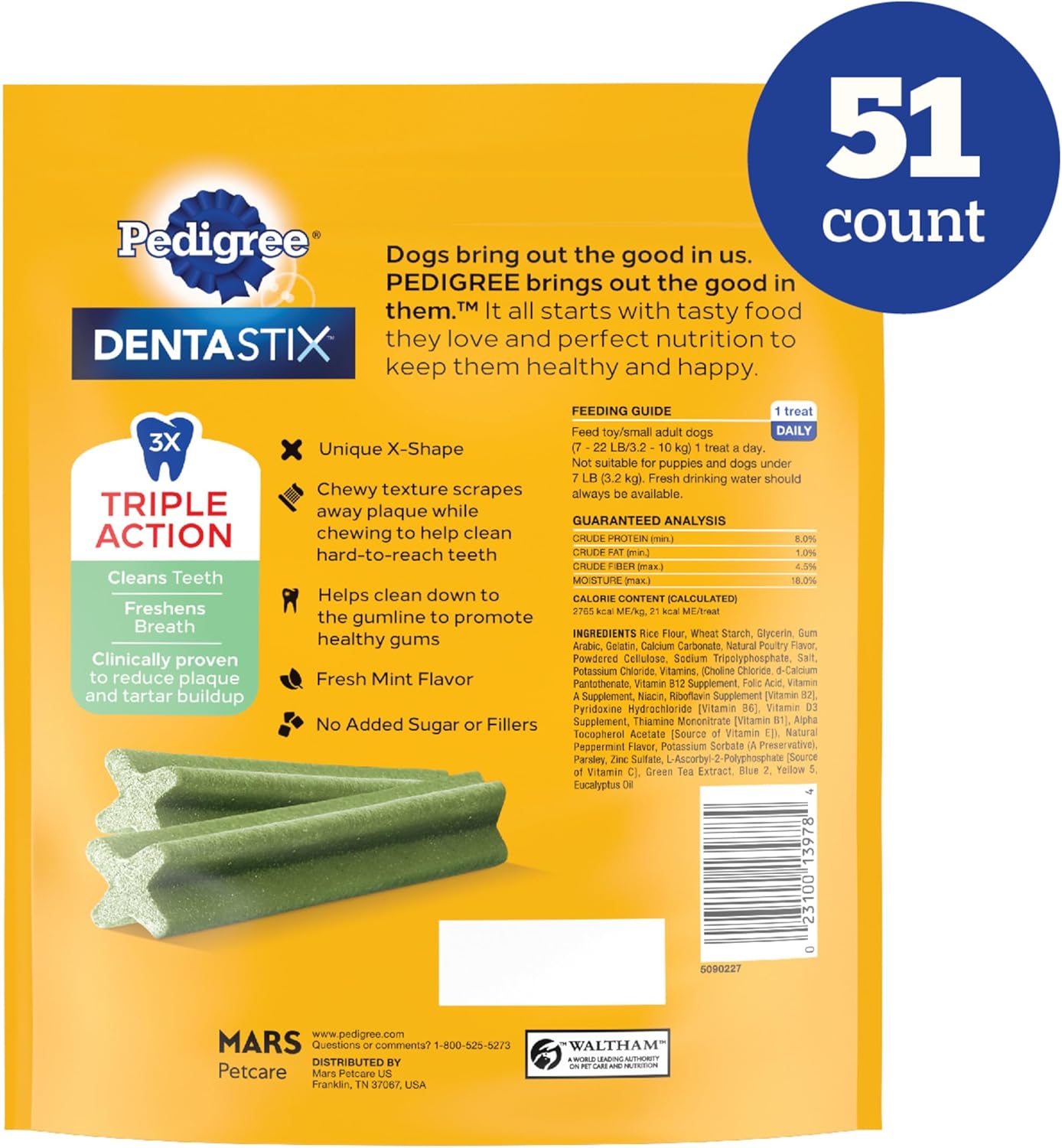 PEDIGREE DENTASTIX Dental Dog Treats for Small Dogs Fresh Flavor Dental Bones, 12.66 oz. Pack (51 Treats)