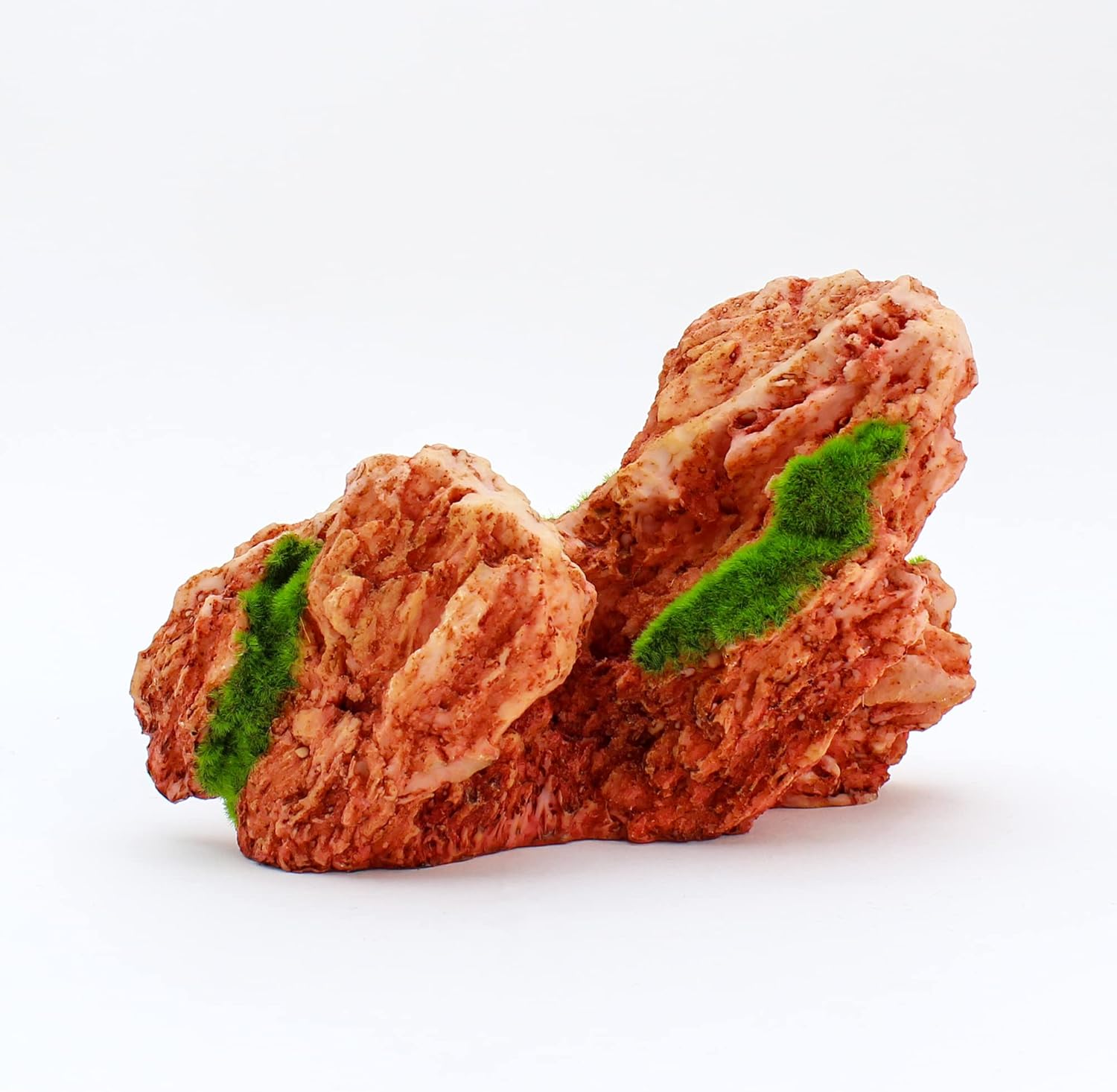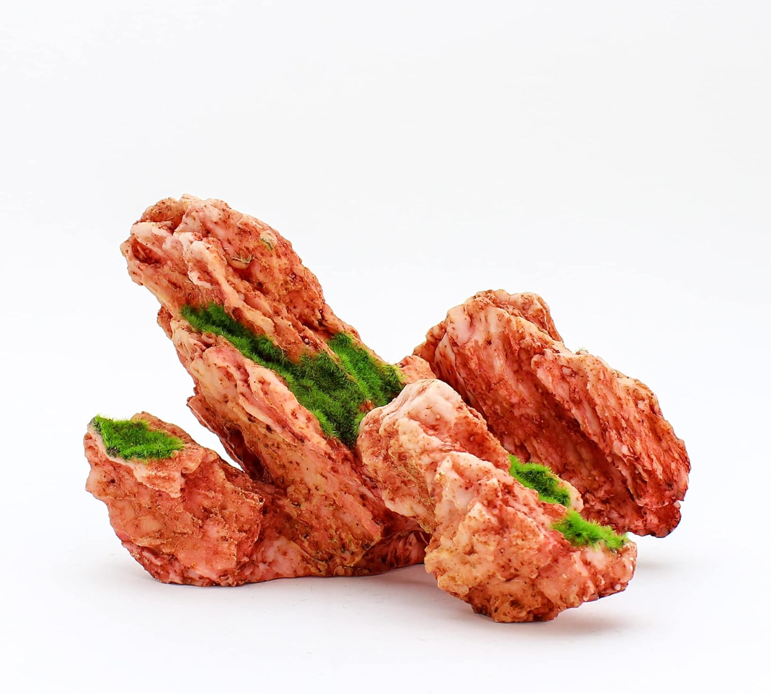 Penn-Plax Aqua-Flora Aquarium Living Resin Decoration with Embedded Glosso Plant Seeds – Red Rock – Safe and Healthy for Freshwater Fish