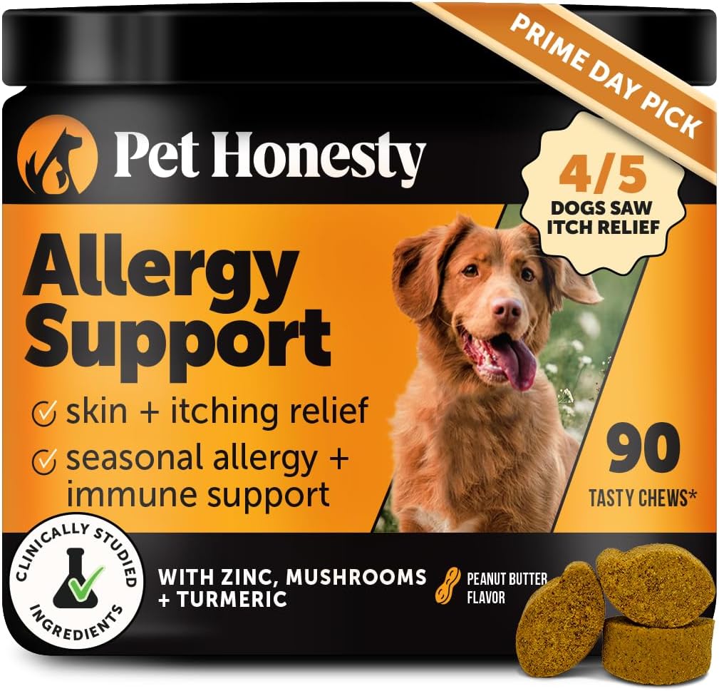 Pet Honesty Dog Allergy Itch Relief - Advanced Itch Supplement with Probiotics for Dogs - Immune Support & Skin Relief for Seasonal Allergies - Natural Itchy Skin & Paw Relief - (Peanut Butter, 90 Ct)