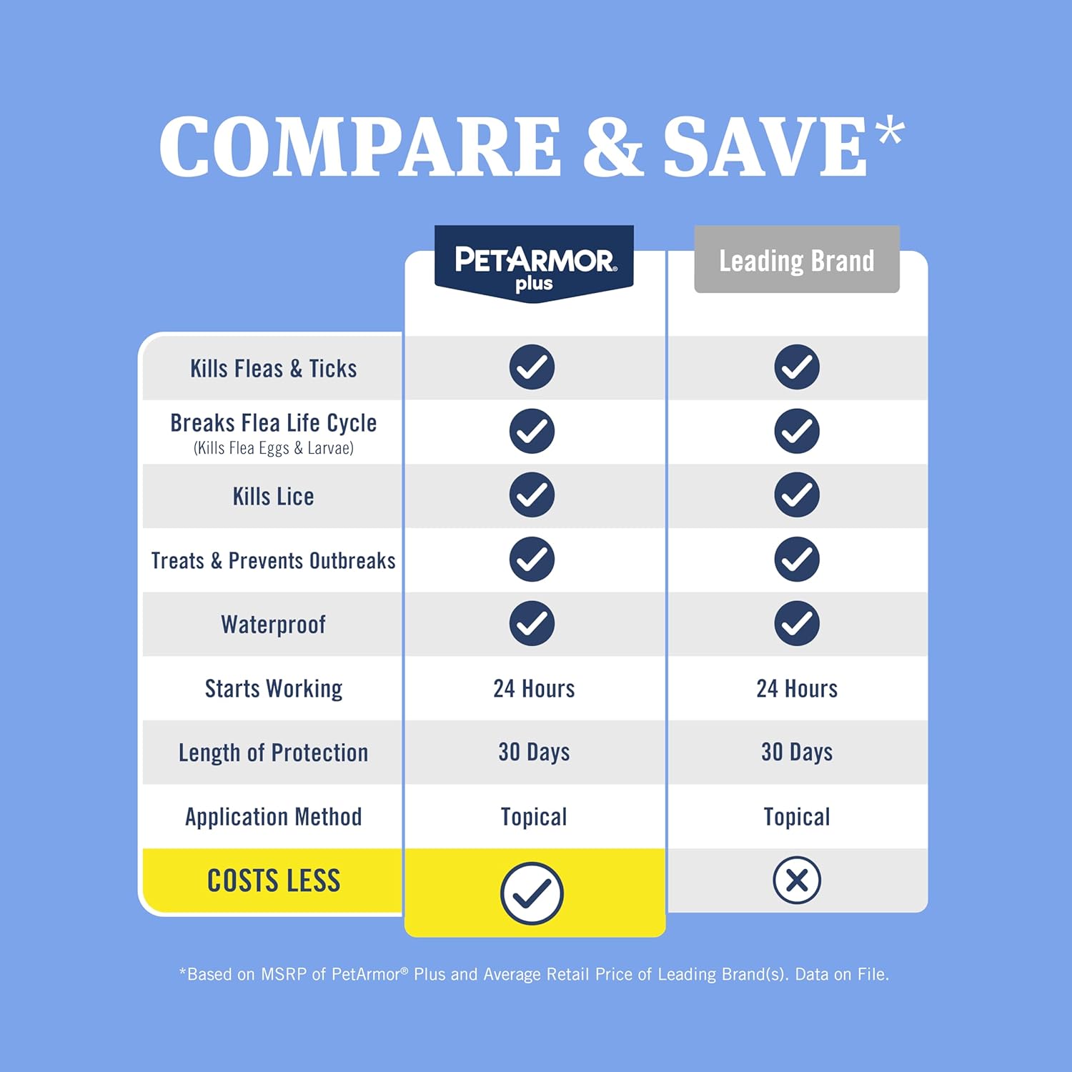 PetArmor Plus Flea and Tick Prevention for Dogs, Dog Flea and Tick Treatment, 3 Doses, Waterproof Topical, Fast Acting, Large Dogs (45-88 lbs)
