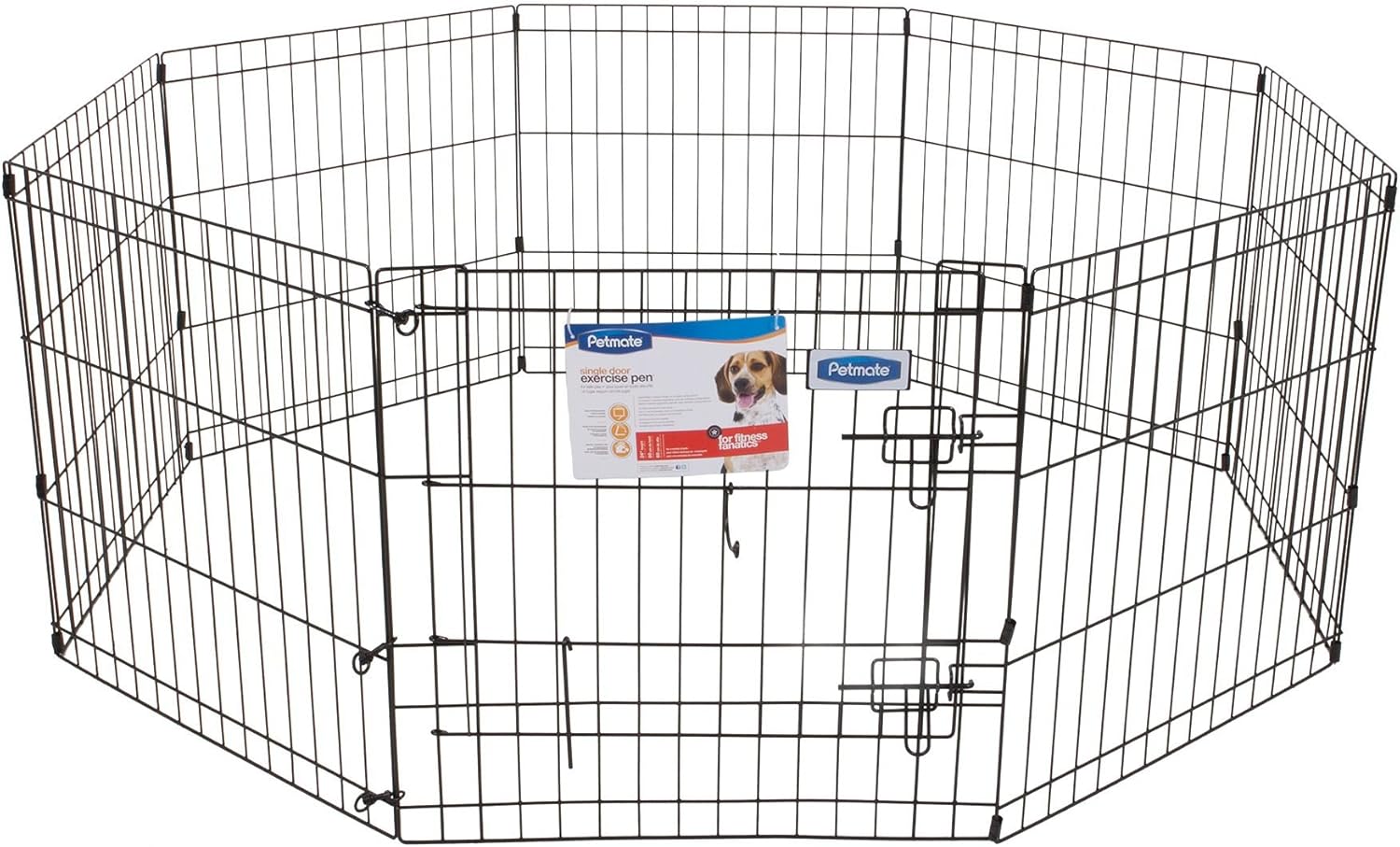 Petmate 55014 42Inch By 24Inch 8 Panels Exercise Pen With Step Through Door, Black