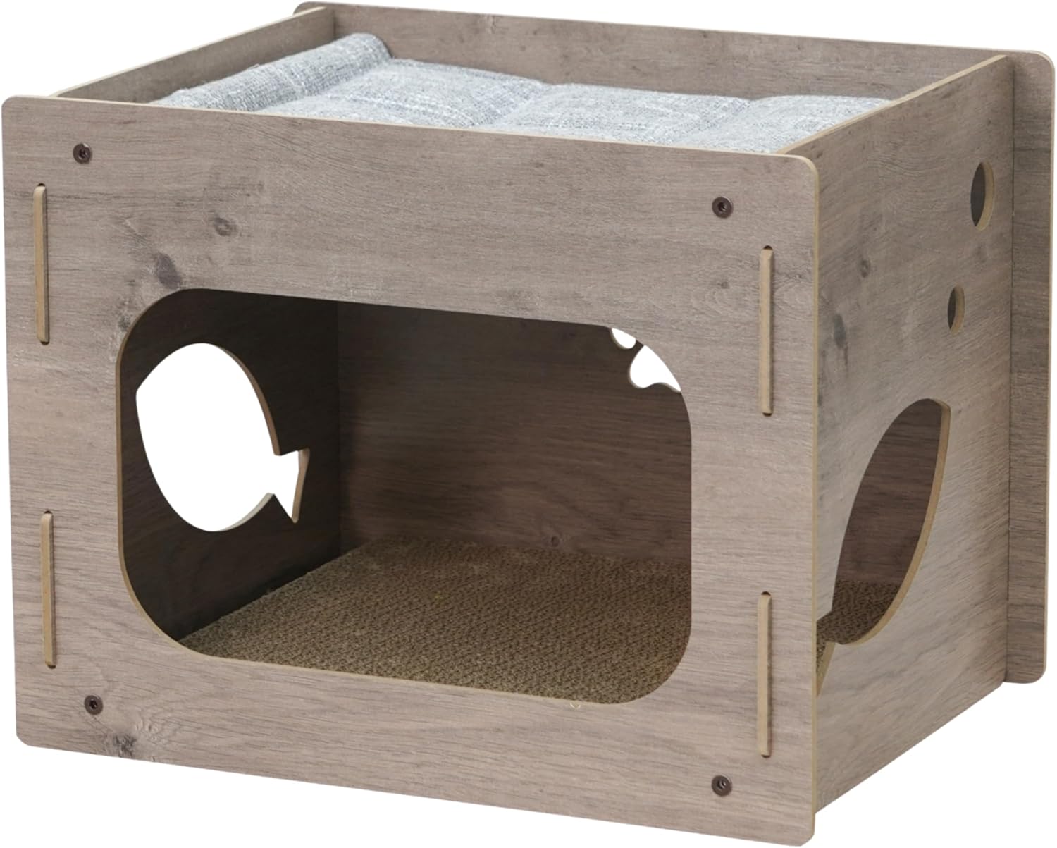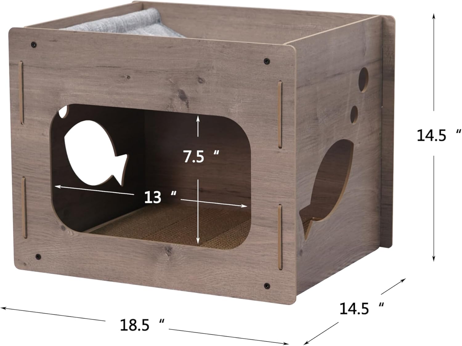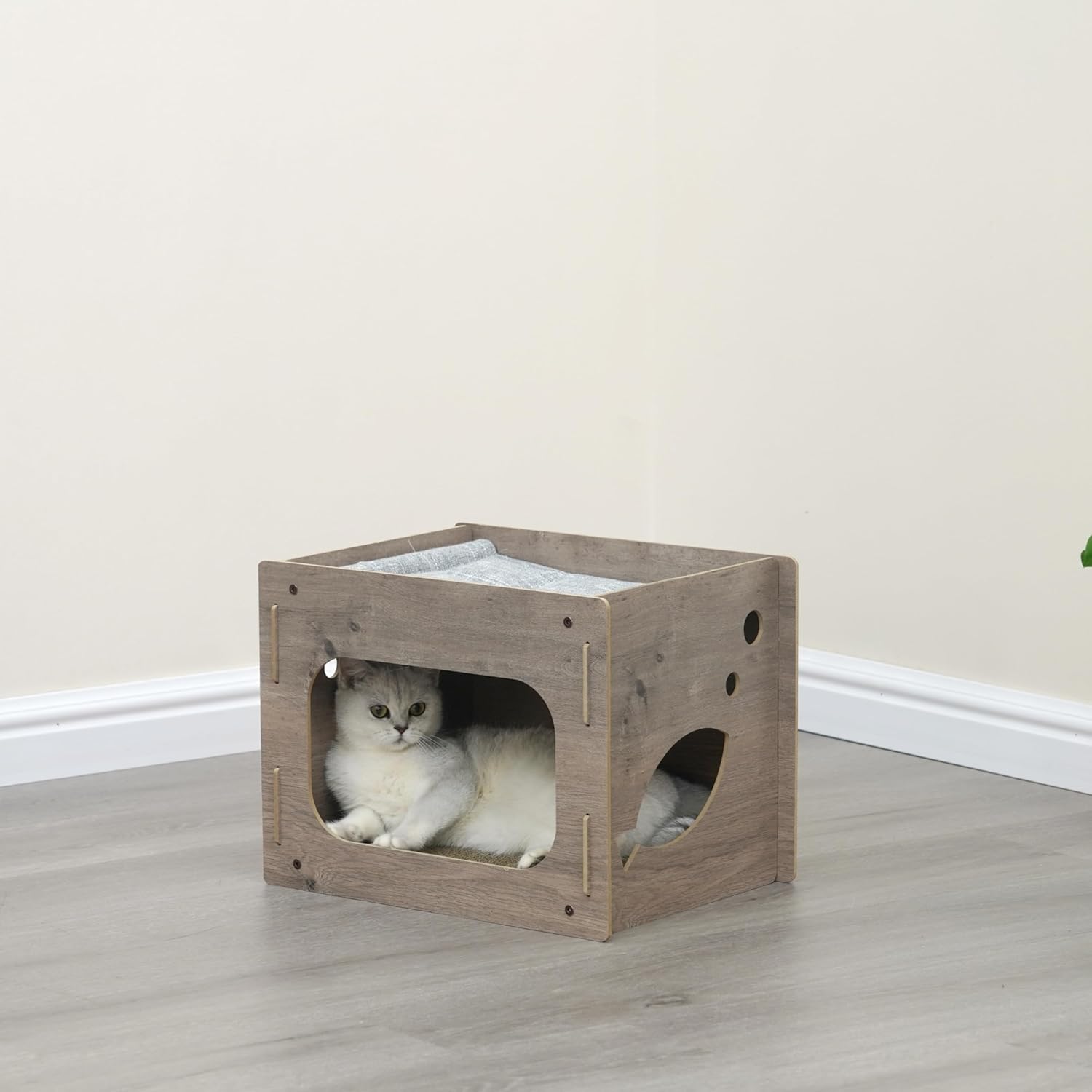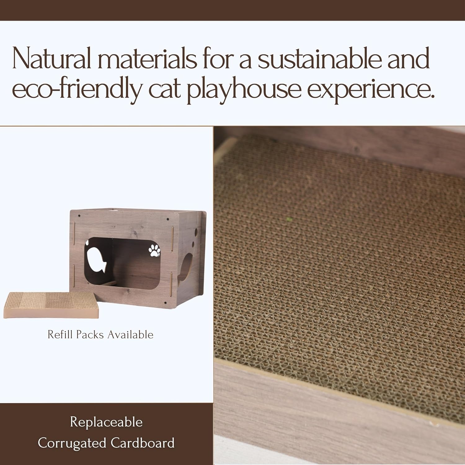 Petpals 2 in 1 Cat House with Corrugate Scratching Pad, Cozy pet Hideaway, Replaceable Scratching Pat, Cat Scratching Cardboard, Easy to Assemble,15x15x19 inches