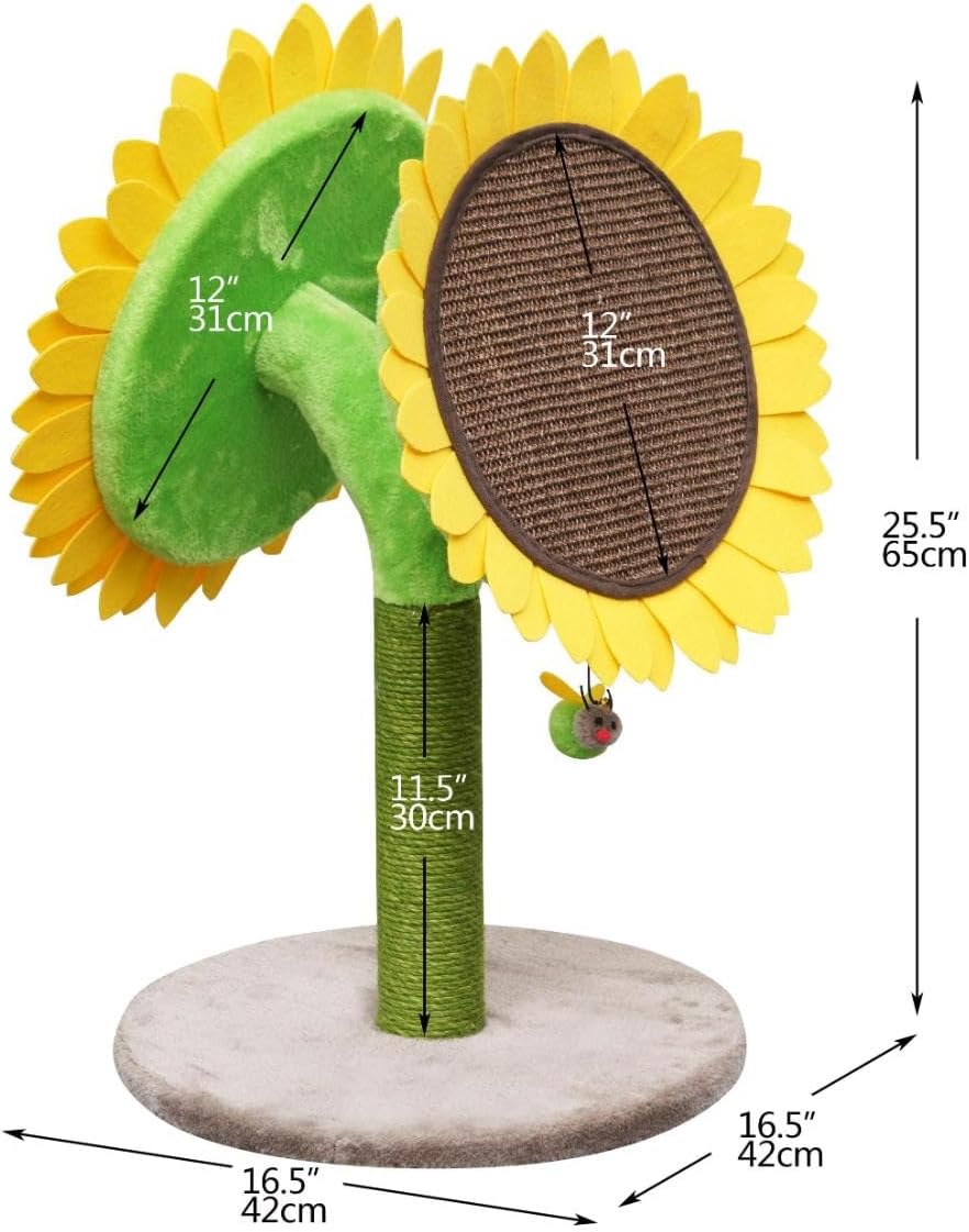 PetPals 26" Tall Double Sunflower Style Cat Scratcher with Angled Jute Scratching Pads and Post with a Toy Bee (Yellow-Sunflower)
