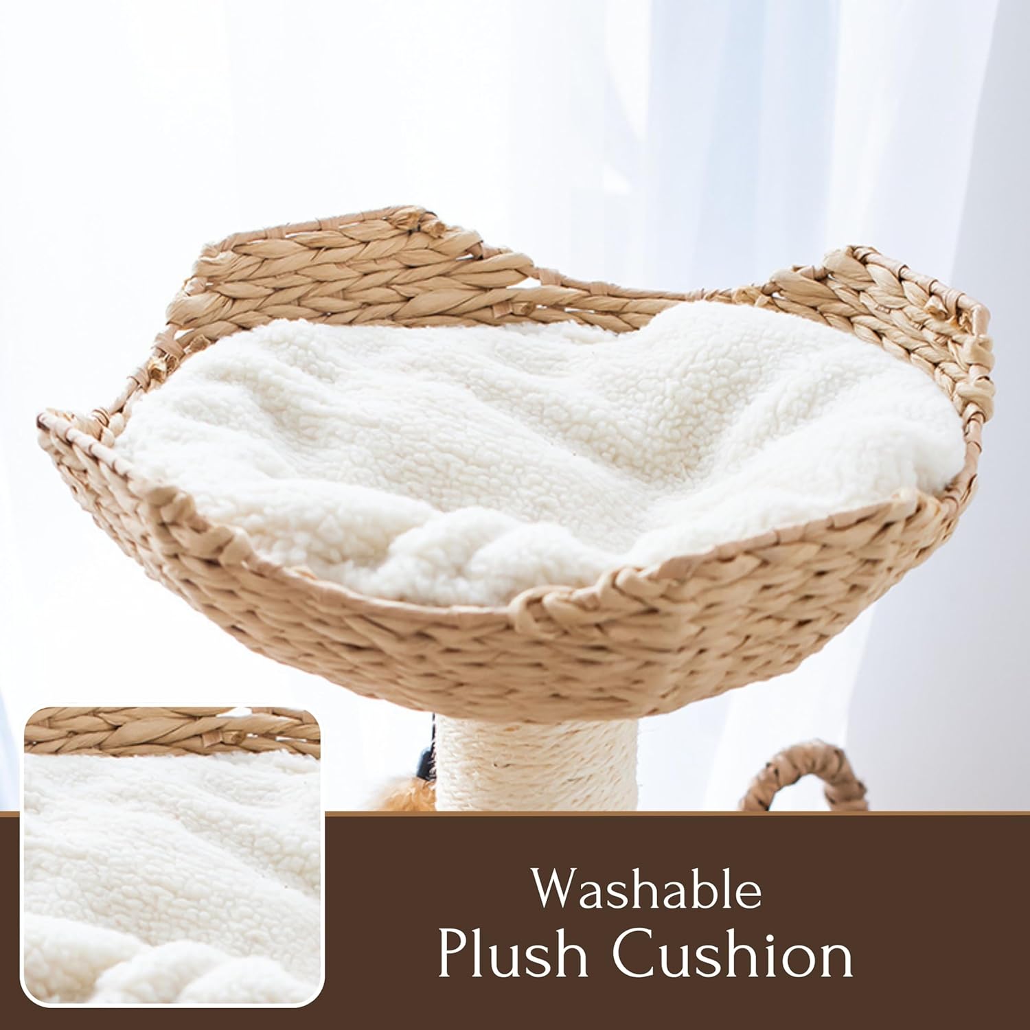 Petpals 28" High 2 Level Handwoven Paper Rope Nest Cat Bed and Large Handwoven Basket Hideaway with Washable Cushions,Replacement Natural Sisal Scratching Post for Indoor Cats