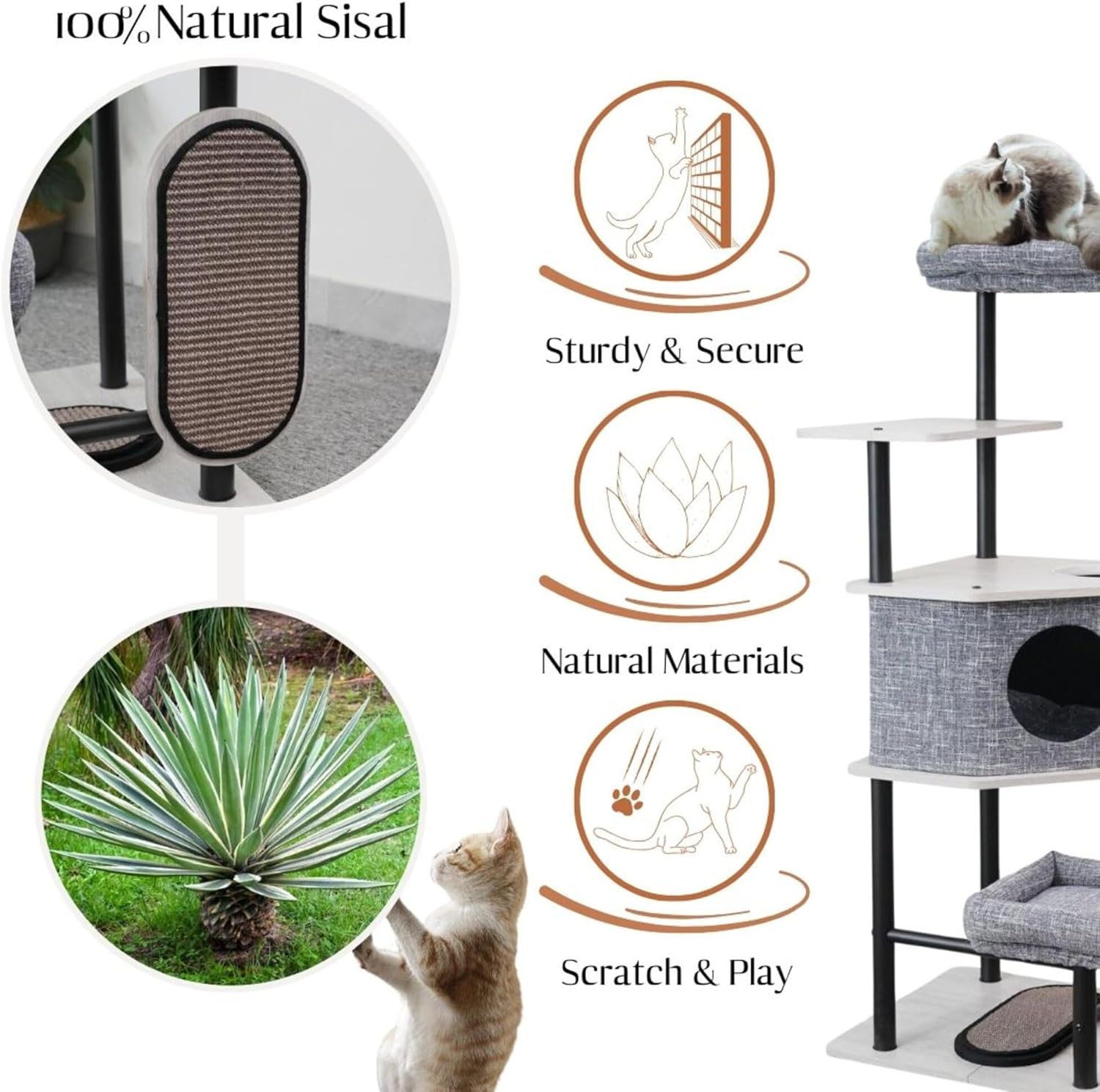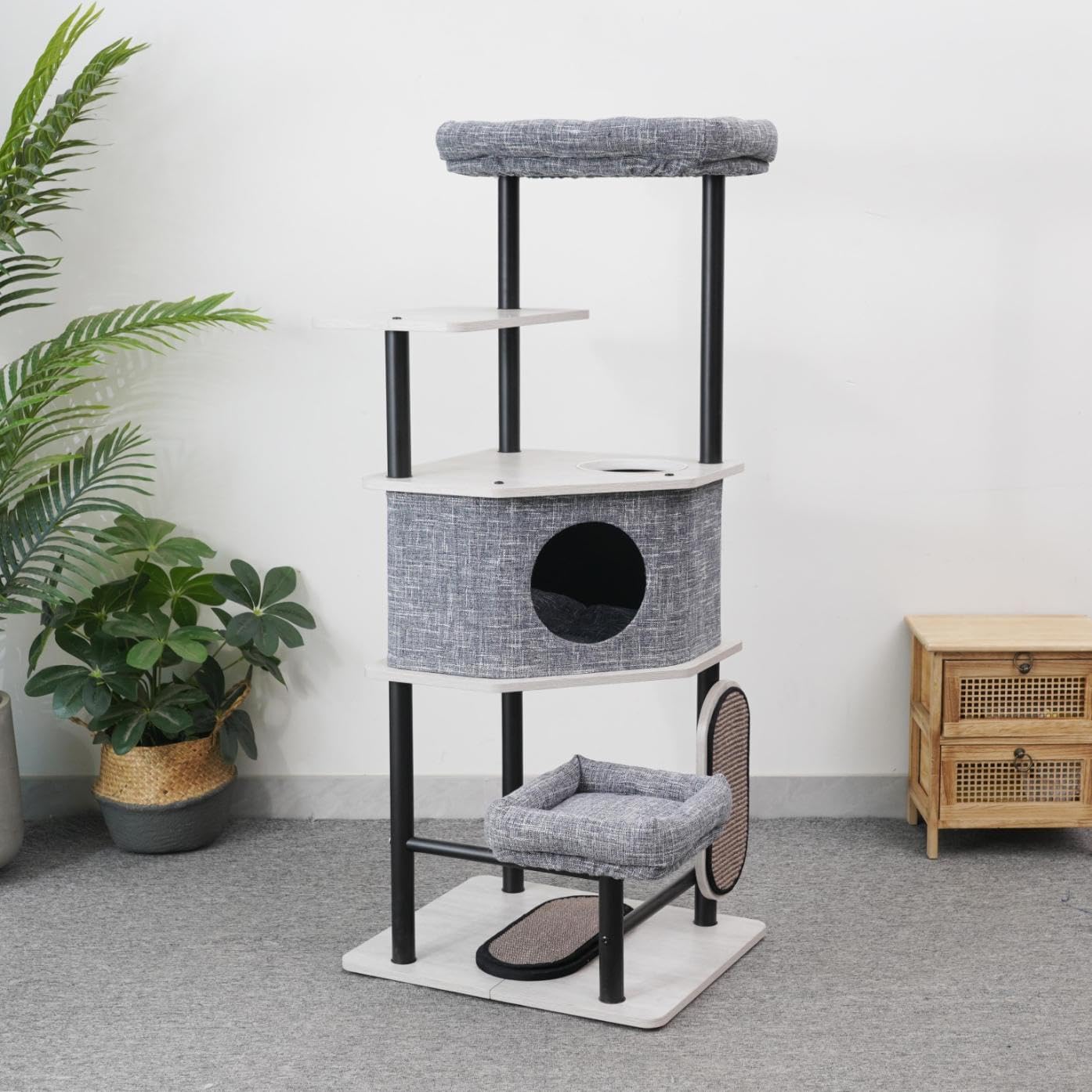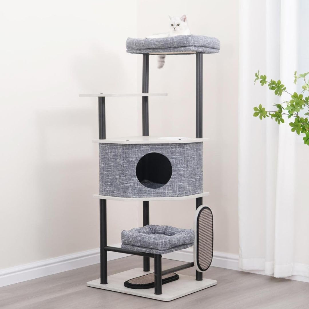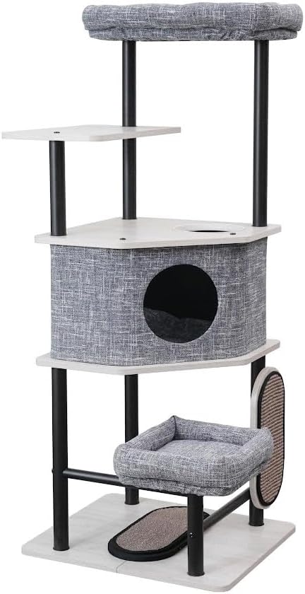 Petpals 54" High Heavy Duty Cat Tree with Durable Iron Frame and Laminated Board,Large Condo,Removable Top Bed,2 Replaceable Scratching Mats
