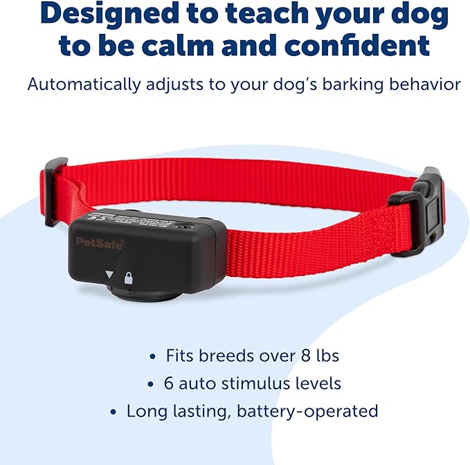 PetSafe Basic Bark Control Collar for Dogs 8 lb. and Up, Anti-Bark Training Device, Breeds, Waterproof, Static Correction, Canine - Automatic Dog Training Collar to Decrease Barking