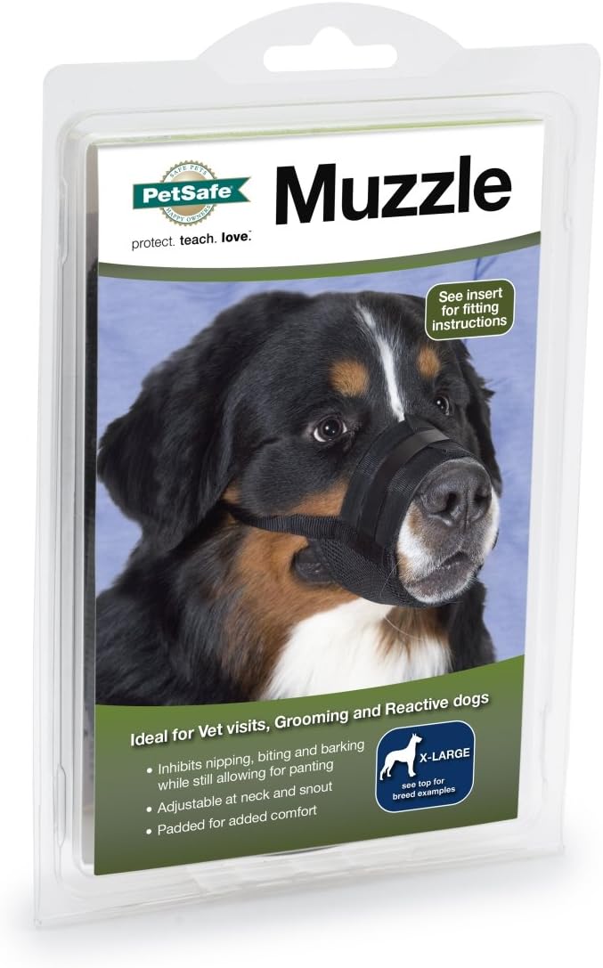 PetSafe Dog Muzzle - Comfortable Padding - Adjustable Sizing - Prevents Biting - Allows Room to Pant - Perfect for Visits to The Vet or Groomer