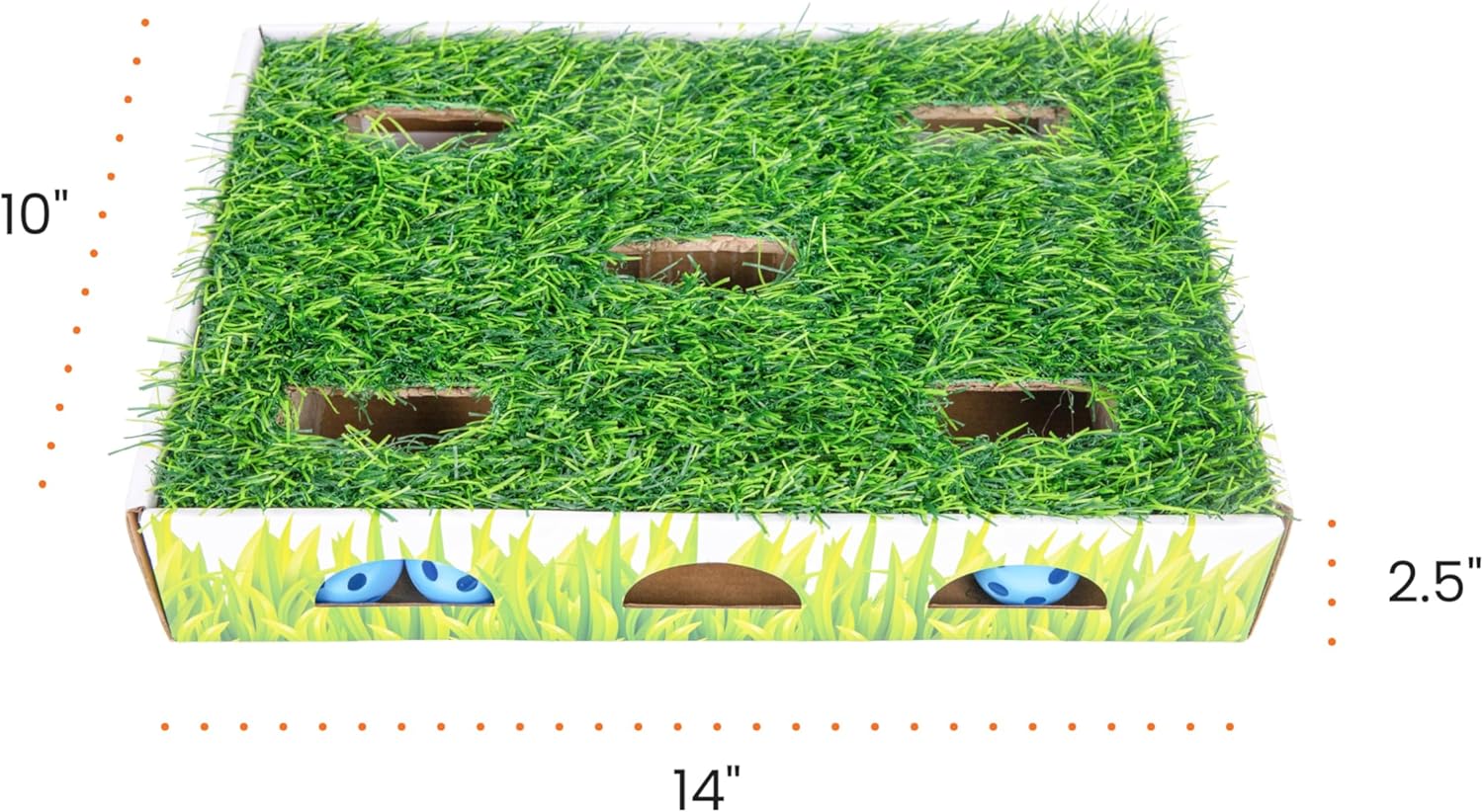 Petstages Catstages Grass Patch Hunting Box Interactive Bat & Swat Game for Indoor Cats, 3 Jingle Balls Included, Green