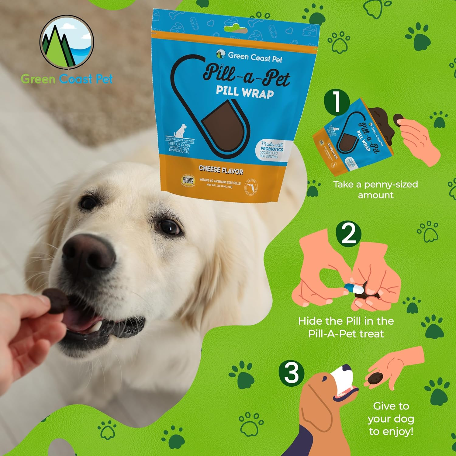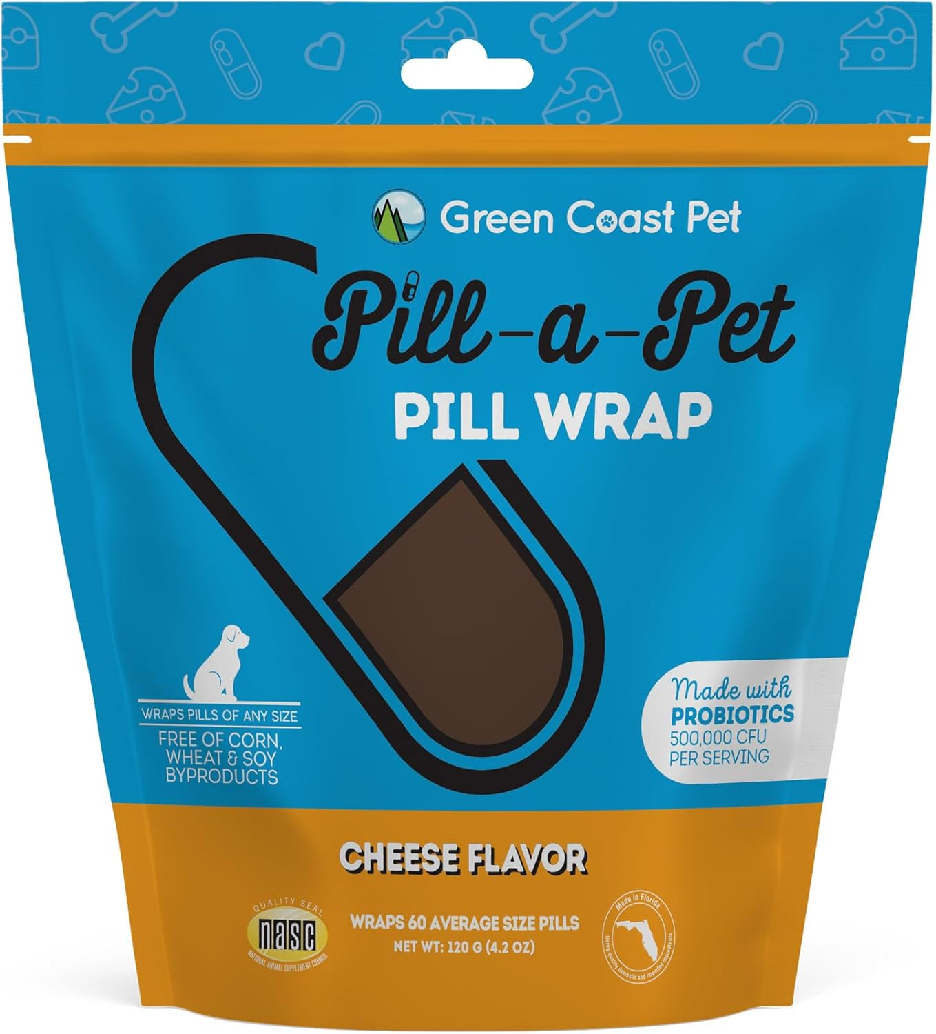 Pill-a-Pet Pill Wrap for Dogs Cheese Flavor | Made in USA | Probiotics
