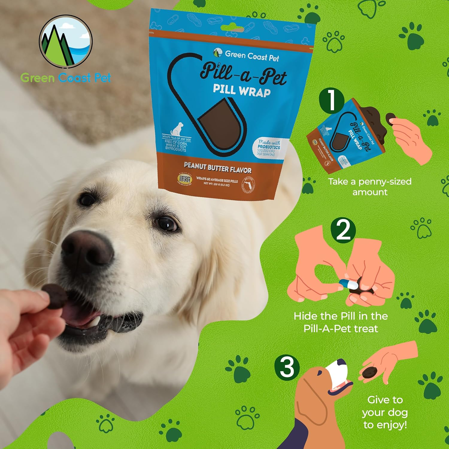 Pill-a-Pet Pill Wrap for Dogs Peanut Butter Flavor | Made in USA | Probiotics