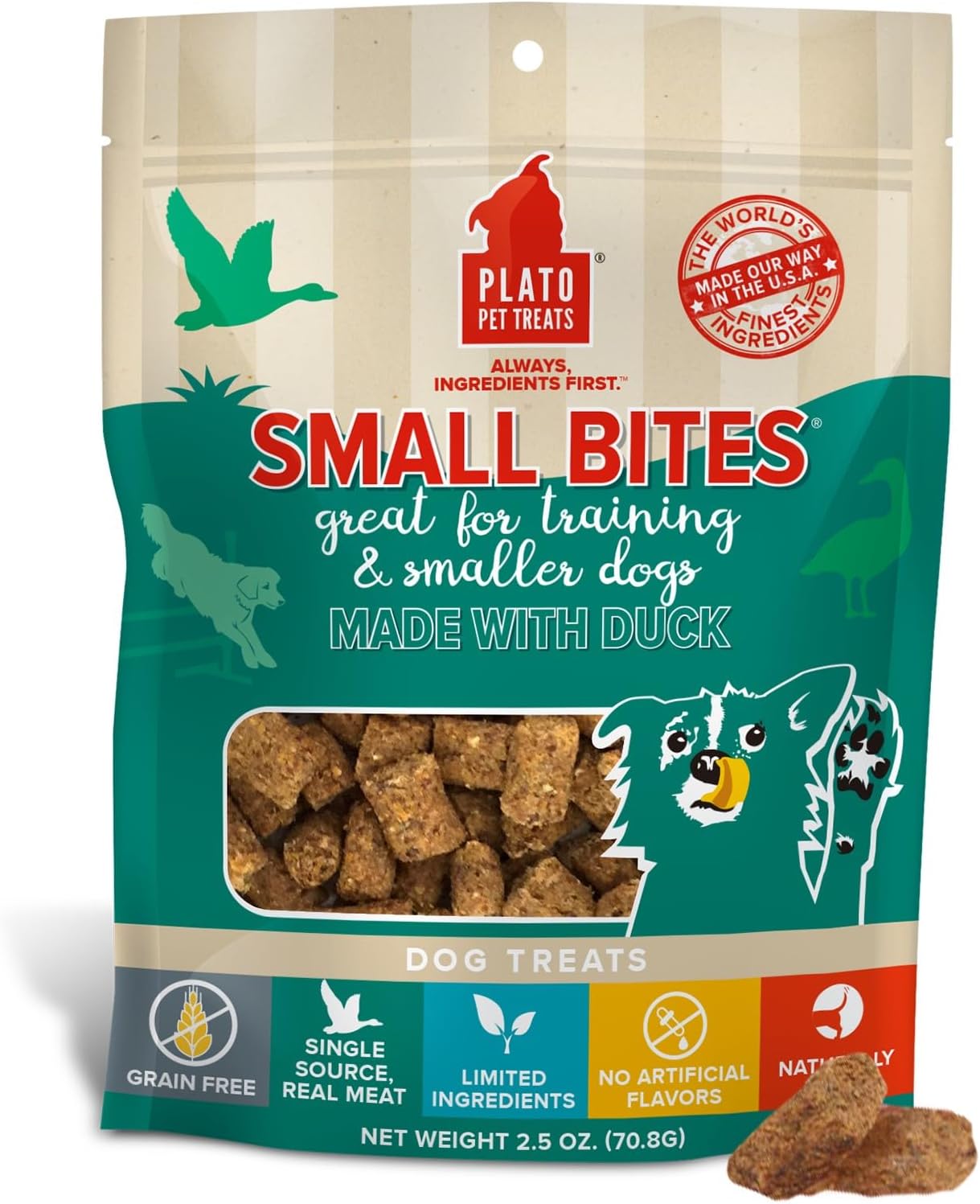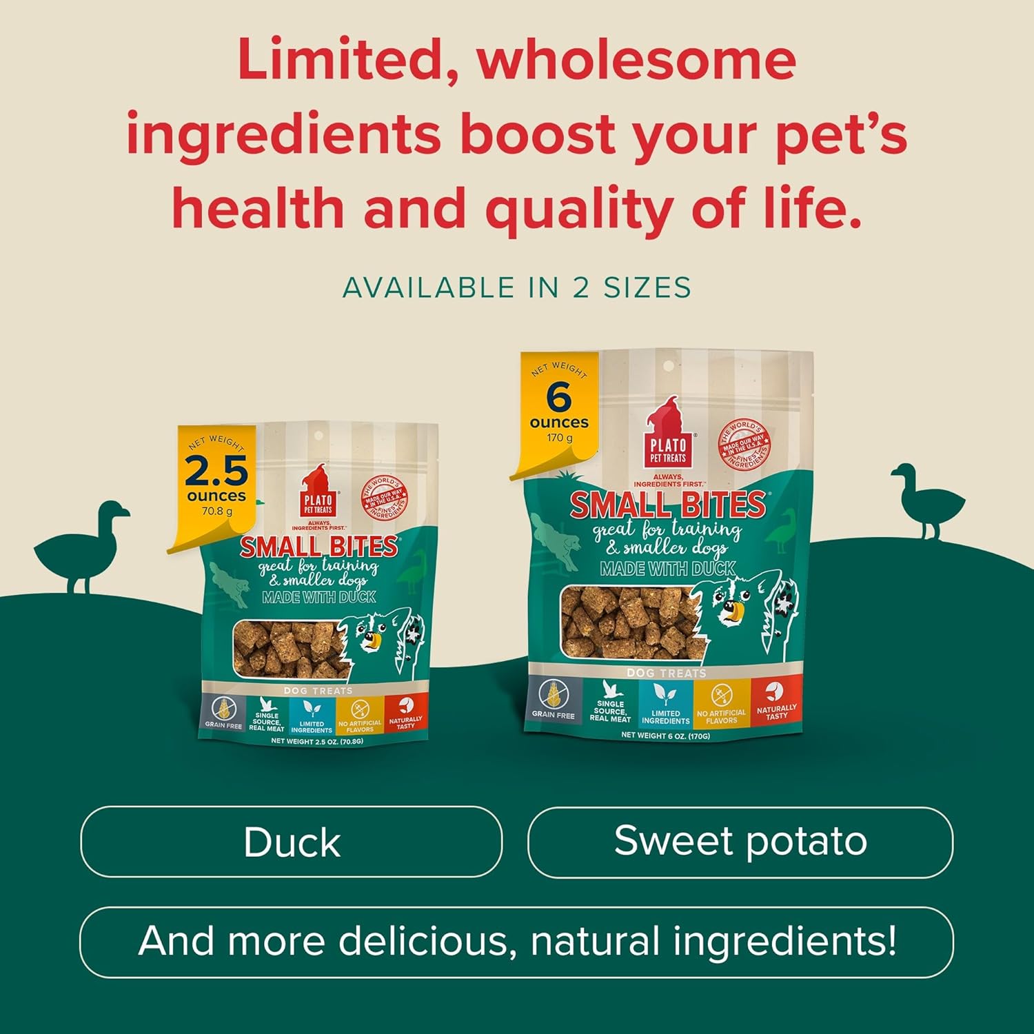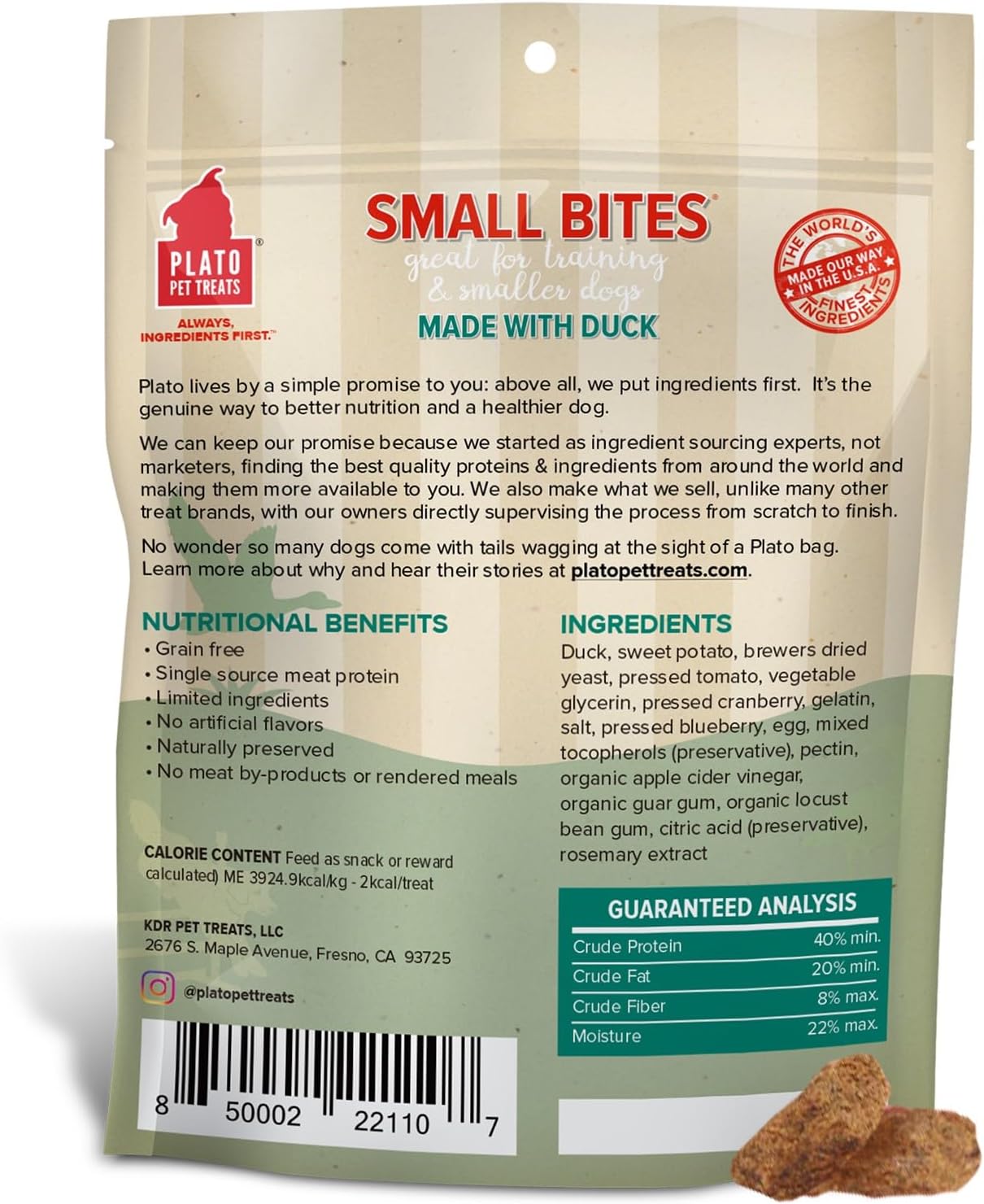 Plato Pet Treats Air Dried Small Bites Dog Treats, Natural Bite Sized Real Meat & Duck, Grain Free & High Protein, Made in the USA