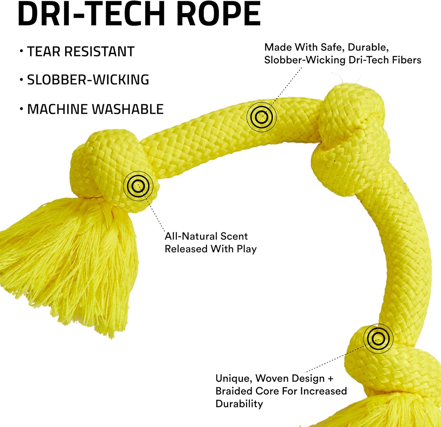 Playology Dri Tech Rope Dog Chew Toy for Large to X-Large Dogs 50lbs & up | Engaging, All-Natural Chicken Scented Yellow Dog Toy for Tough Chewers | Easy to Clean | Interactive and Non-Toxic