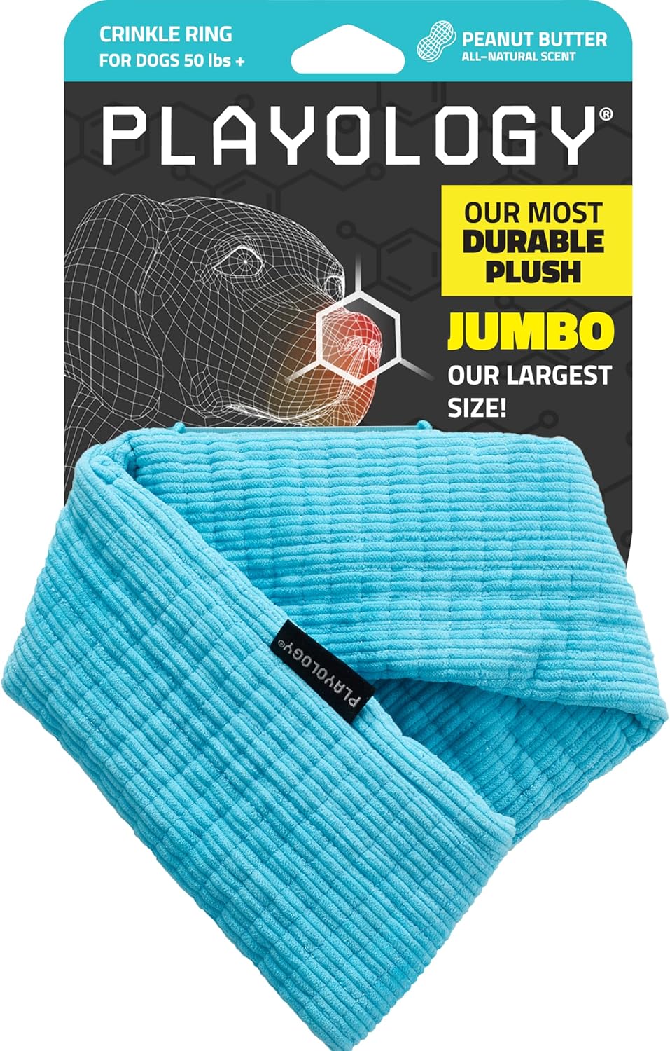 Playology Plush Crinkle Ring for Large to X-Large Dogs 50lbs & up | Engaging All Natural Peanut Butter Scented Plush Dog Toy | Fun Crinkle for Extended Play | Easy to Clean, Interactive & Non-Toxic
